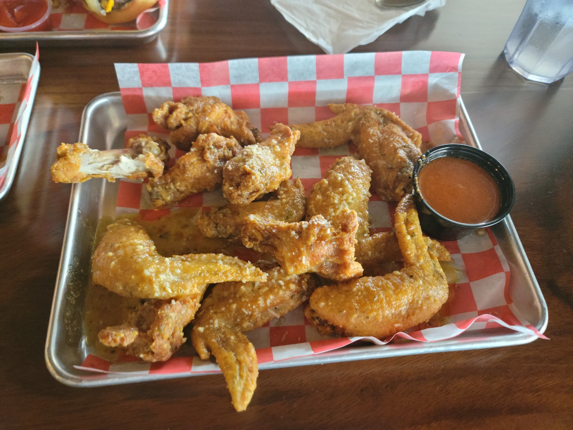 $17 for 12 wings, the wings themselves were good, the garlic parmesean I didn't care for since I tasted no garlic, however the hot sauce I got on side was good. The only problem I had with the wings was atleast one of them had a hair cooked...