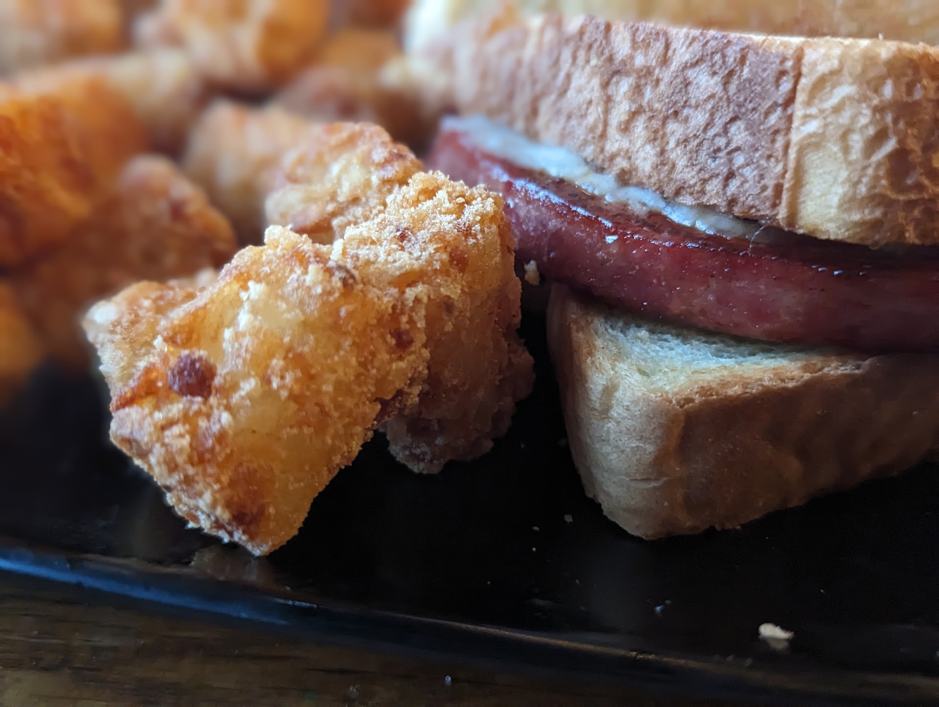 The tater tots were nice and crispy, very satisfied. Maybe could have had a bit more salt right out of the fryer, but that's easily enough added.