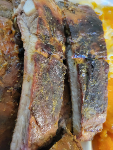 The food here is very, very tasty. The prices shown on their Google menu are certainly outdated, and I sadly didn't get an updated photo. (Rib platter is now $13) The food is most certainly messy! Pretty sure the sauce is NOT keto, so beware when they ask if you want sauce.