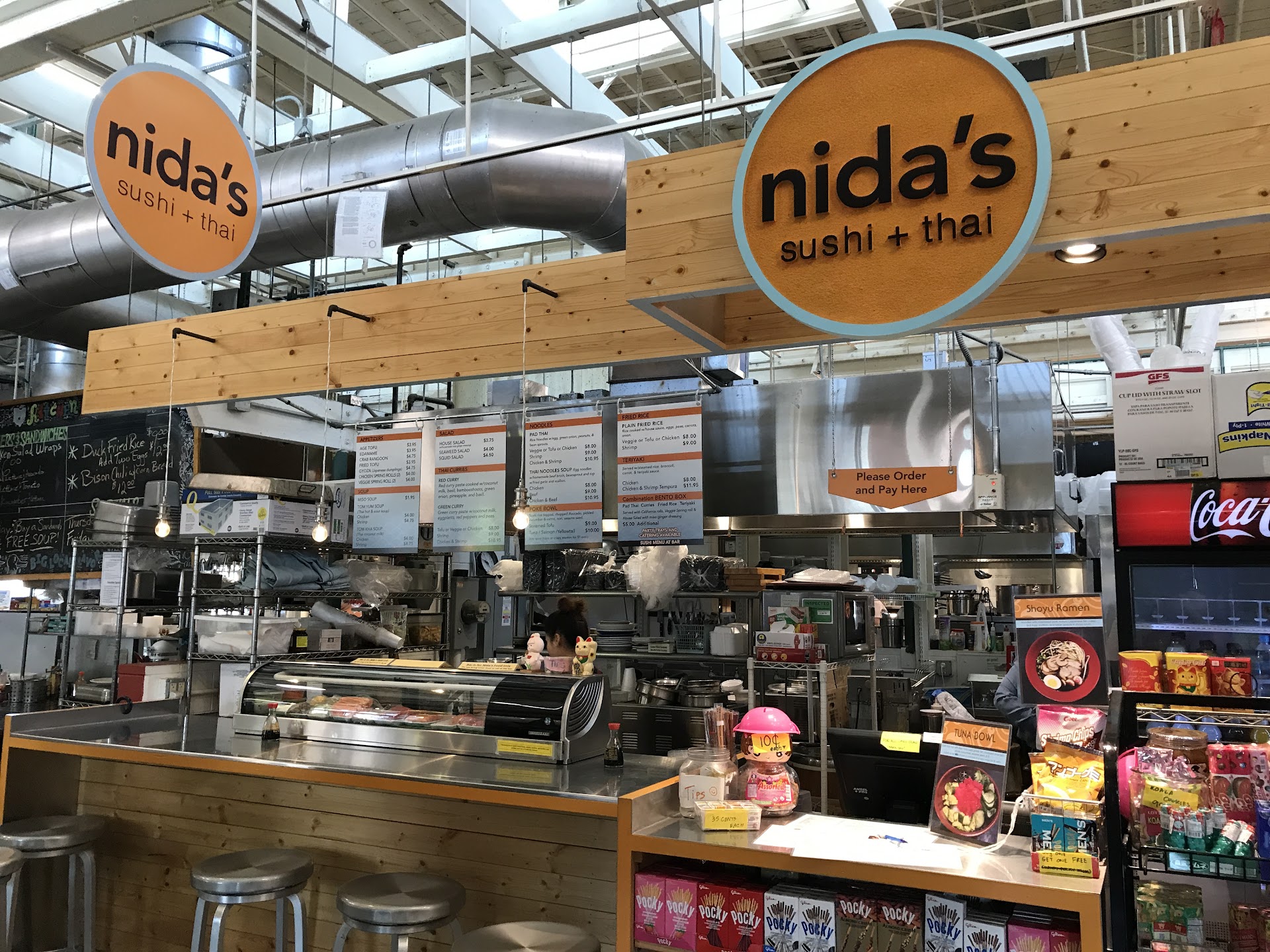 We were headed to another local sushi place, but they were closed. We searched for sushi and found Nida's. I'm really glad we did. Let me start by saying this is not a normal sit down restaurant sushi experience. This is a small vendor inside the North Market. There are only about 5 seats right at their bar, but there is public seating upstairs if that's full. They don't serve beer or sake, just soft drinks, tea, water, etc. They have a decent selection of sushi, but you need to order from the menu. One of our party tried to place a custom order and they discouraged it. However, the four of us really enjoyed our selections. They were all prepared after we ordered -- nothing was already prepared. Three of us had sushi combo #1 (we all added spicy) and one had the Salmon Lovers combo. I was shocked at how good everything was. One of the best sushi experiences I've had...