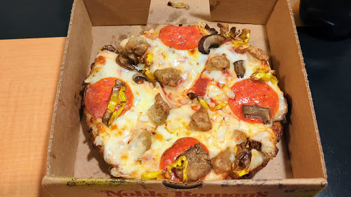 Read moreAside from maybe some time in my childhood that I don’t remember, I have never been to a noble Roman’s. Me & my boyfriend stopped in today on a Sunday, we were going to go to Chicago's but it’s closed on Sunday. We are super glad we went to noble Roman’s instead. It has a lovely nostalgia. The menu looks like it was printed in the late 90s & I hope it stays that way. The workers were super nice & surprisingly fast considering it looked like there was a grand total of 2 people working & at least 4 full families that were dining. Two drinks & a large pizza with enough for us both to have leftovers for 30 bucks max. The flavor way outshines any other regular chain pizza place. Definitely feels like a gem from the past that has...