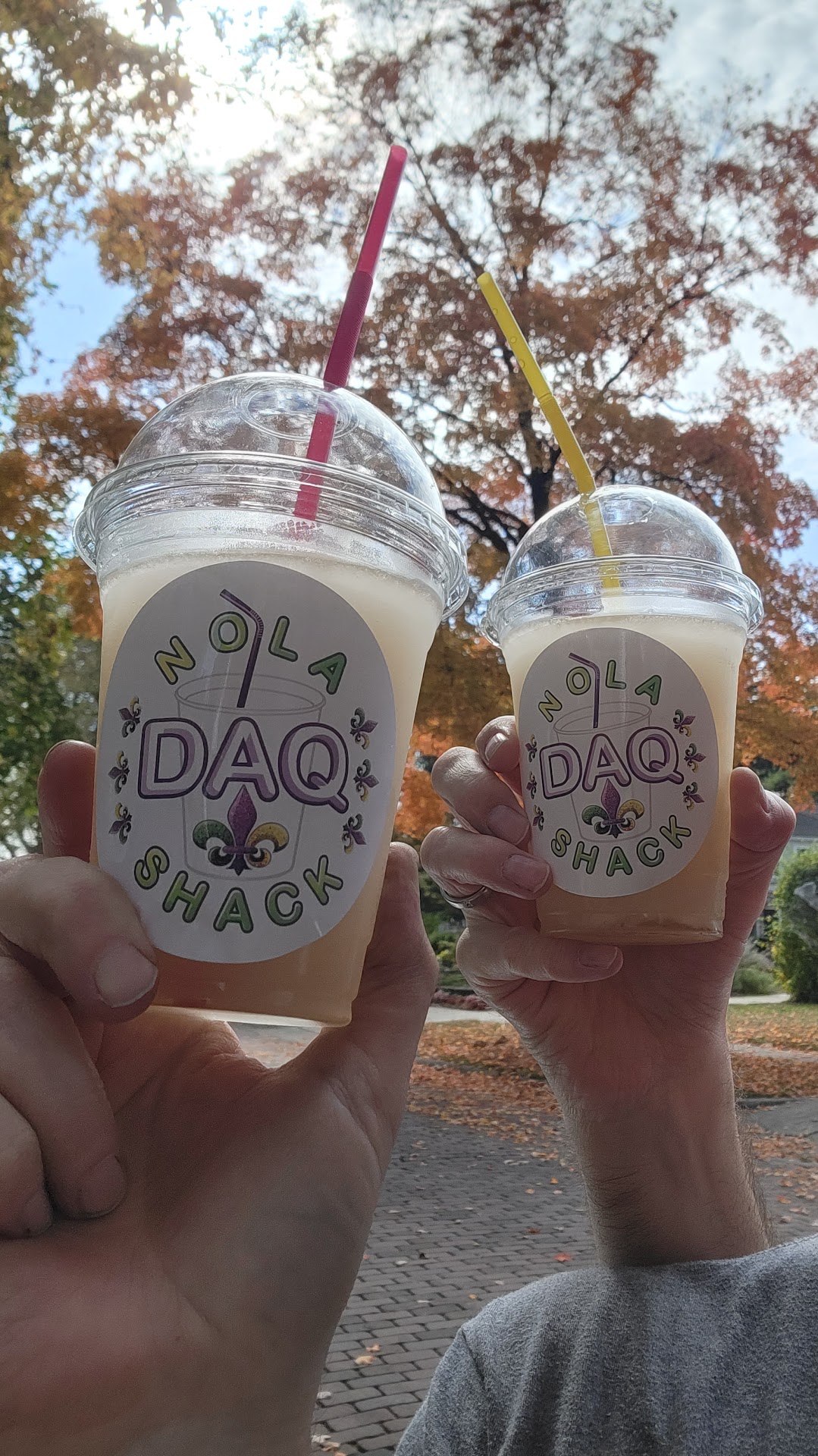 Read moreSuch a fun place! Great atmosphere and excellent customer service. Got the "It's Fall Y'all" Daq and our son got a mix of the sour apple and the cherry. They are delicious. The best part (maybe for the next time) is they have an agreement with the bar at the end of the East Market to add a shot to your Daq, what they call Daq That Thing Up! They can even give you recommendations on what shots to add! Didn't get to the change yet to try the snoballs or the milkshakes but we can't wait...