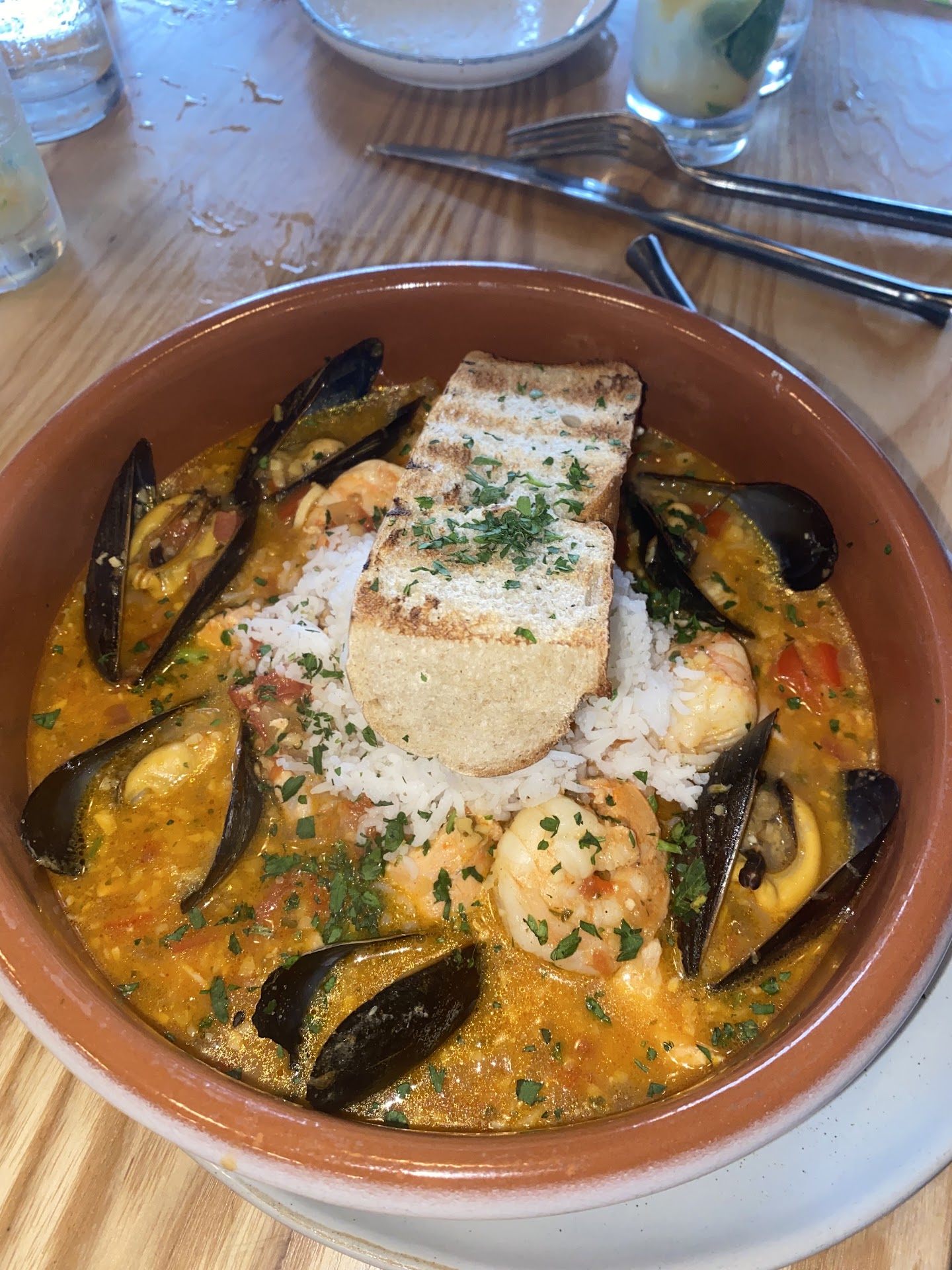Read moreFood surpassed any expectations I had for the place based on location. We started the evening off with a round of drinks: Lavender is the New Black and You Want a Peach of Me?s. The Lavender is the New Black was very vodka forward. The You Want a Peach was so refreshing and not in your face at all, more of those for the table. We started in with the Veggie Board and Beer Steamed Mussels. The veggie board was decadent but the cauliflower could be cooked more and more naan bread provided for the table. The Beer Steamed Mussels were punchy with the beer flavoring and ham pieces, went very well with the bread offering. Asked the waitress what drinks she recommended and ordered the Barrel Aged Black Manhattan- not impressed, immediately ordered a Cosmo to replace it, should have stuck with the refreshing You Want a Peach of Me?s. My Poor Mans Lobster roll came next, nothing too exquisite about it or note worthy, just meh. The Zarzuela came next. A delite. Very tasty. Next the Ahi Tuna Salad which featured very vinegar forward pickled cucumber, and pieces of Ahi Tuma steak that would have been more desirable if sliced thinner to enjoy with each bite of the salad. Dessert around the table was scrumptious. The Lavender Panna Cotta my favorite, the cooks did forget to add the pirouette cookie. The peach cobbler tasted too smokey for my preference. And the pineapple upside down cake was equivalent to a syrup soaked waffle according to my...