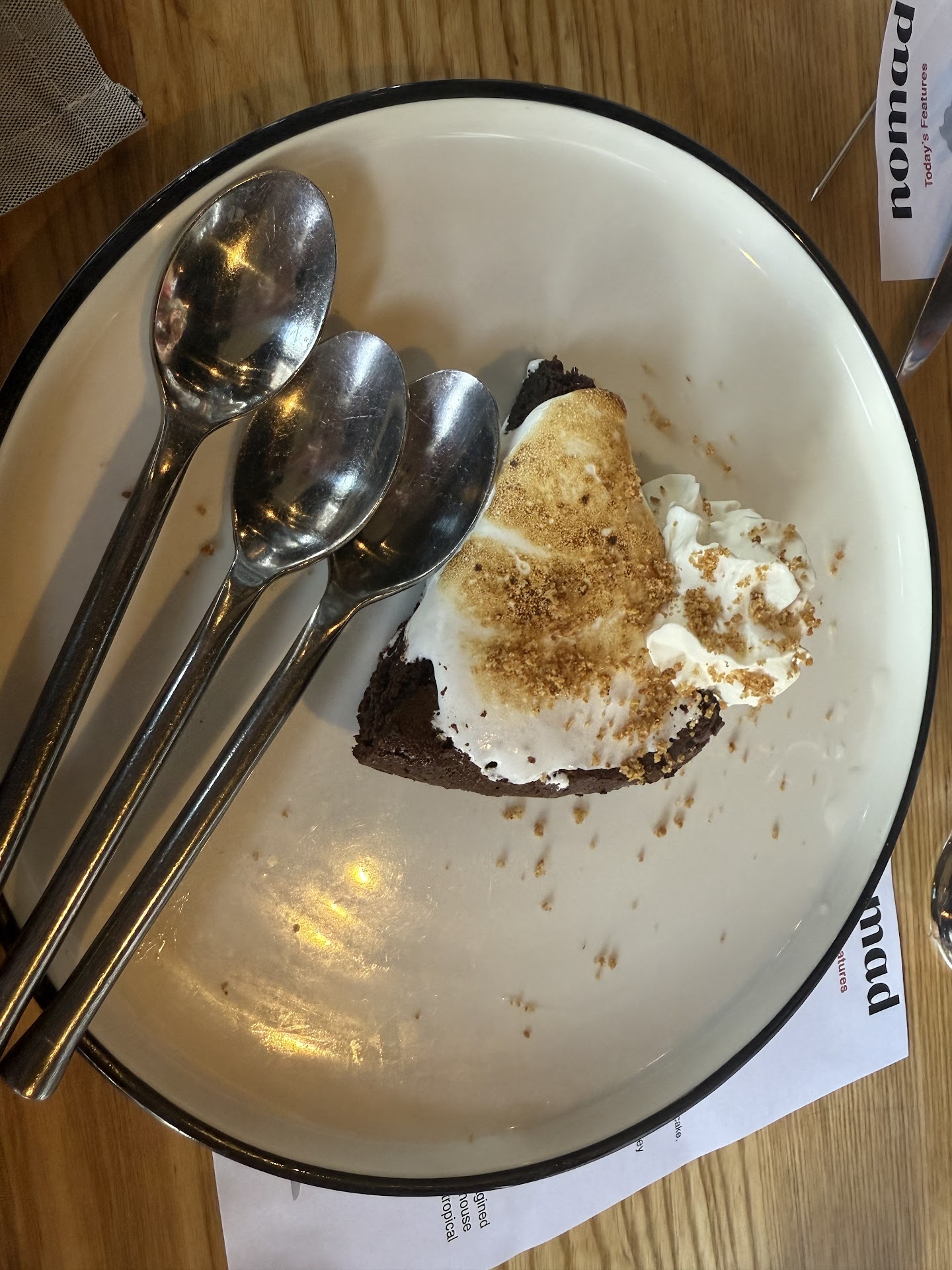The one highlight was dessert: a flourless s’mores cake that was genuinely delicious and beautifully executed. It was the only part of the meal that felt special.