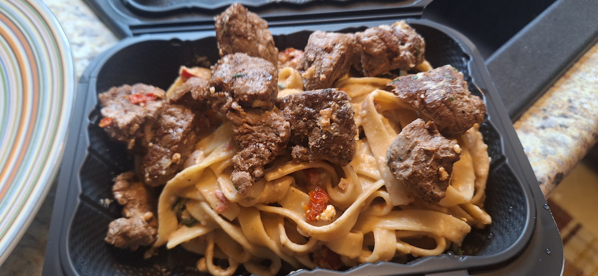 Read moreWhoever gives 5 stars is lying. The food is not good and the service is terrible. I'm highly picky when it comes to Italian food, but when I saw the steak gorgonzola was back and my son wanted their breadsticks, we went there on Saturday, 3/29/25. Not busy AT ALL. It took our waitress 10 minutes to greet us and take our drink order. She was nice BUT repeatedly kept reminding us she's only been working there for 2 weeks (and for no reason). Ordered our food, I, of course, got the steak gorgonzola pasta. The salad was barely dressed, and the same was true for the breadsticks. My son ordered the zupa toscana soup, and well, let's just say mine is better (watered down and no flavor; I ate it the next day). The chicken alfredo my husband and son ordered was ok but nothing to write home about. The steak medallions (which is what it used to be) for the steak gorgonzola is now chunks of questionable beef. The waitress also didn't ask what temperature I or mom my would like our steak (apparently it's automatically rang in as MEDIUM) - so needless to say the beef chunks were well done NOT EVEN MEDIUM. We asked to redo the steak correctly, and 2nd go-around was just as bad. Needless to say, the steak bites are now dog food. I'm almost certain the steak was left over chuck meat, in addition to the crappy food. Our kids decided to try a game on the tablet device. Come to find out you have to pay for the games. It would've been nice to know that, but no message popped up saying you'd be charged. I would not recommend it, and I would take your money to a mom-and-pop...