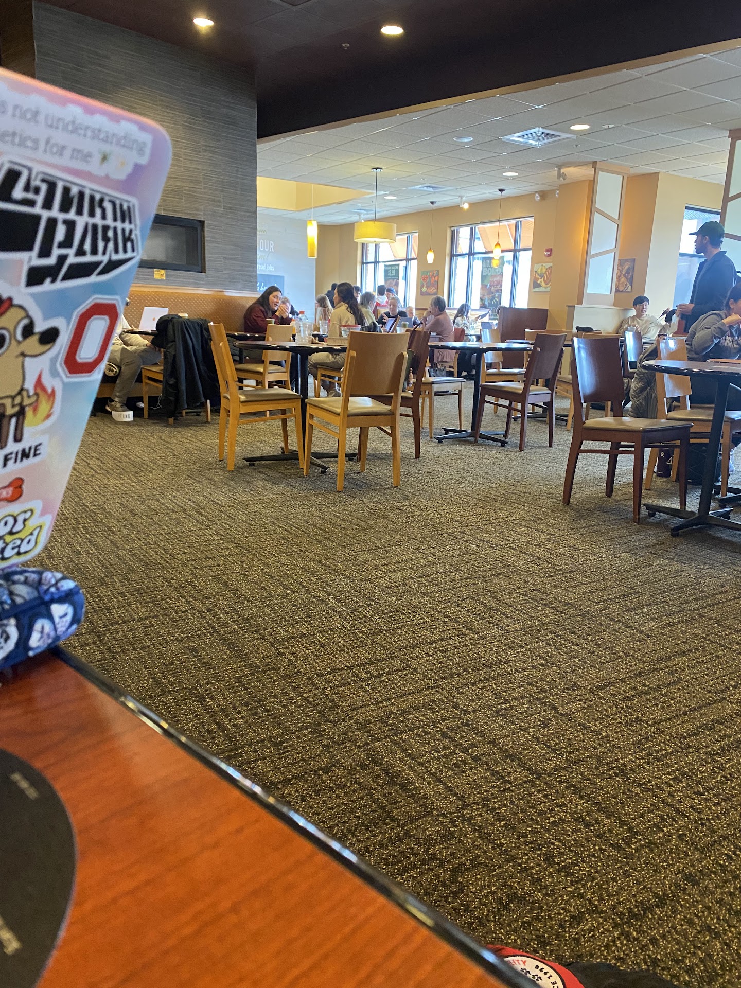 Read moreI am reviewing this Panera Bread location on the basis of accessibility for those who may be disabled. As far as outside the restaurant, there is only one lowered curb for those who are in wheelchairs so, those who have to park in the back of the parking lot would have to wheel themselves all the way to the front of the restaurant to get in. As you approach the restaurant, there are no handicap buttons at either of the entrances making it very difficult for someone who has a disability to get in the place safely. When you get into the restaurant, the walkways are pretty wide making it easy for a wheelchair to get around in the restaurant. As for the ordering kiosks, they are a bit high for someone who may be in a wheelchair limiting them to having to wait in line to order their food. When it comes to the menu, the font is pretty big making it easy for anyone to read. The drink station is a bit high as well making it harder for someone in a wheelchair to get the beverage that they want. When it comes to the dining area, it is very spacious and all the tables/booths are handicap accessible. Overall, this restaurant is semi-accessible for those who are disabled, but the restaurant definitely could improve in a lot of areas in order to make it more accessible for those who...
