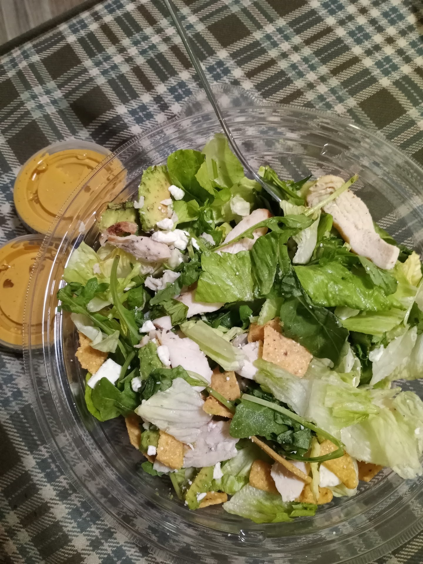 Who really seals up a Panera Southwest chicken salad order and thinks this is what ANY southwest salad remotely looks like? It's missing the black beans, corn, salsa, pickled onions, the cilantro i was promised by the website... basically devoid of all flavor. Terrible quality control Panera. No Bueno. Without ANY toppings I really got to focus on how salty and bland Panera chicken really is, and it made me question my life choices, such as frequenting this glorified Arby's of a chain as often as I do for some inexplicable reason........ Also I'd expect much better design from a brand new building, but the dining room ambience is awful, everyone is coughing all over each other with low back booths, no privacy or distancing. Have we learned nothing about pandemics this year? But sadly I'll have to dine in, if I hate myself enough one day to go back to Panera, to make sure 40% of my salad, and 100% of the flavors, are...
