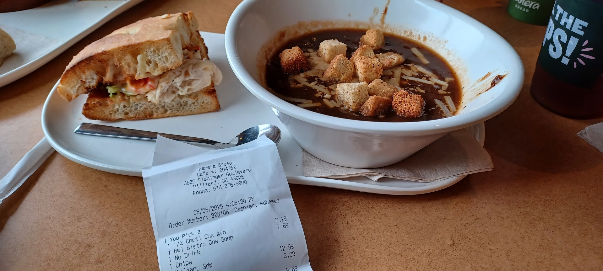 Read moreGone super downhill. The bosses are super unprofessional, so unorganized. I'm usually leanient on businesses especially right now, but no one knew what was going on. Got an iced coffee , said they were out of ice and if we wanted it (for our ICED coffee we paid for before they told us this) they had to get it from the back. Then, they made us fill our own cold coffee. But they were out at the drink station. When I told them this they all acted confused, except for one employee who was rushing around stressing trying to figure out how to make it. My partner asked if he could just get a strawberry lemonade instead, and the manager said "that's like a $3 difference and I don't even know if we have strawberries." Uh, alright. So we waited. And once the coffee was done the ice had melted, and the iced coffee batch was still warm. It was watery, warm, "iced" coffee. They could've at least had their stock noted and told us what they were out of before we ordered and paid for our stuff. I didn't even dare to ask for my money back. Then they give us attitude over being confused as to what was wrong. Also, I have gone to get my Cobb salad multiple times and each time there's at least 1 ingredient missing that wasn't stated to me when I ordered. Super annoying. And the salad bowl sizes are always changing. Safe to say I'm over this Panera and will be making the trip to sawmill road...