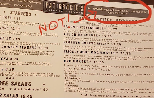 I had previously eaten at Pat and Gracie's [in the "Discovery District" of downtown Columbus so I had been expecting a similar menu and dining experience yesterday.