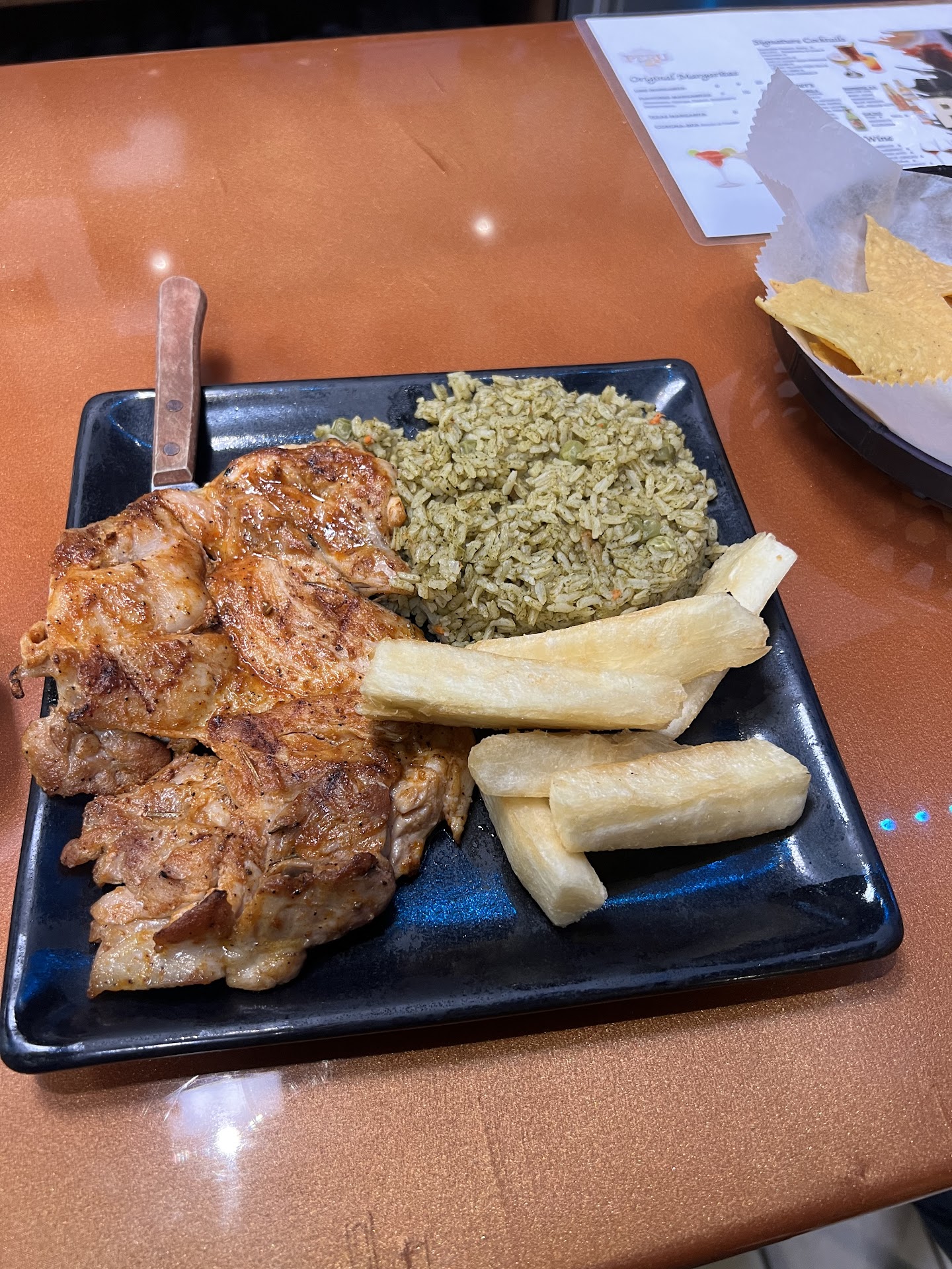 We got the Pollo Parrillero with a side of fries and sweet plantains and the Crazy Trio. Everything was juicy, delicious, seasoned very well, and cooked perfectly! The Pollo Parrillero was my absolute favorite and it was delicious. Our server recommended the sweet plantains and I loved every bite. I have slight regret about getting fries because I was under pressure, but happily will come back to try other dishes and sides. We recommend the Crazy Trio because you get a little bit of everything: chicken, beef, and shrimp and it was incredible. Our server also gave us the house sauces and those were so good and paired well with the entrees. We spent about $41 for 2 before tip, which is a bit expensive, but they do have lunch specials that are probably a bit more budget friendly.