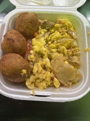 The menu is simple short and adequate for different flavors. My choice was the small goat curry for $14. This included two sides. First choice was banana fritters but they were not ready yet. The chosen items were peas and rice with plantains. Good sized helpings of both.