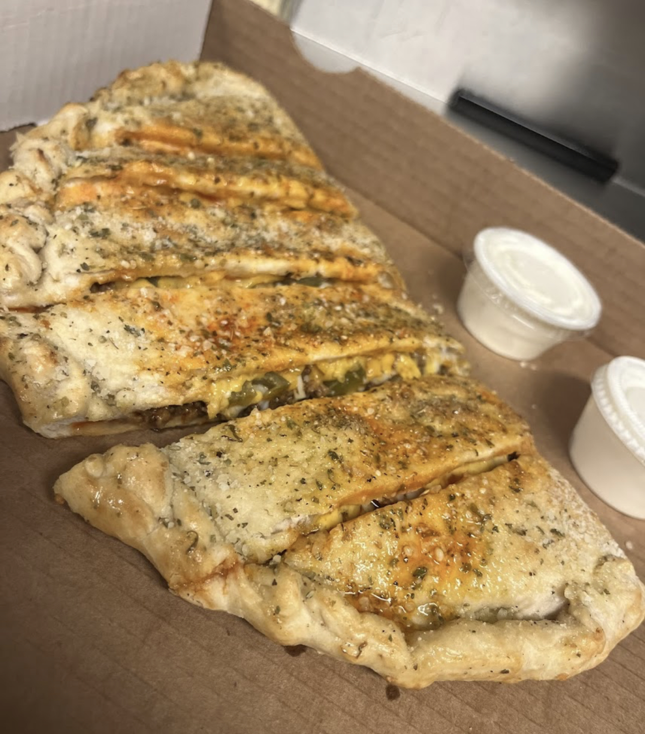 I was told 45 min delivery time. So I called an HR and ten minutes later and my p izza wasn't even put in the oven yet and was told it will be another 40 minutes. Two hours after my order never made it I called back again and the same operator said " it's on the way out the door, so I started to tell the girl that they should offer me a discount and she hung up on me.. Two hours 10 minutes.. still waiting. I feel treated like trash! An apology would have been wothy of forgiveness. Now I told the delivery driver and like she he came up with an excuse. I tipped as usual not his fault but next time, there will be...