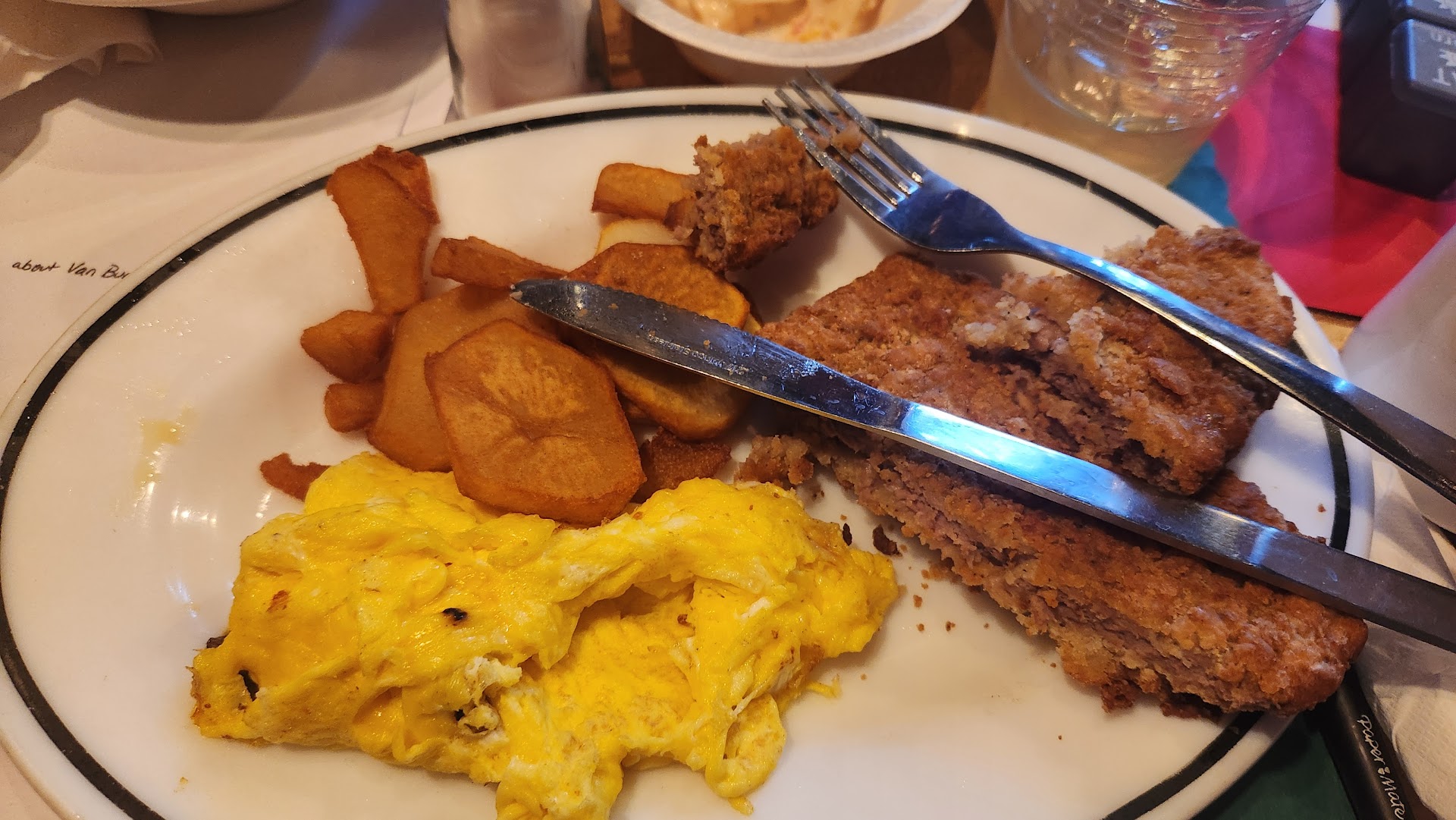 I had to ask for a spoon because the German Potato Salad had been almost like thick soup and the only utensils that had been served with my meal had been a knife and a fork.