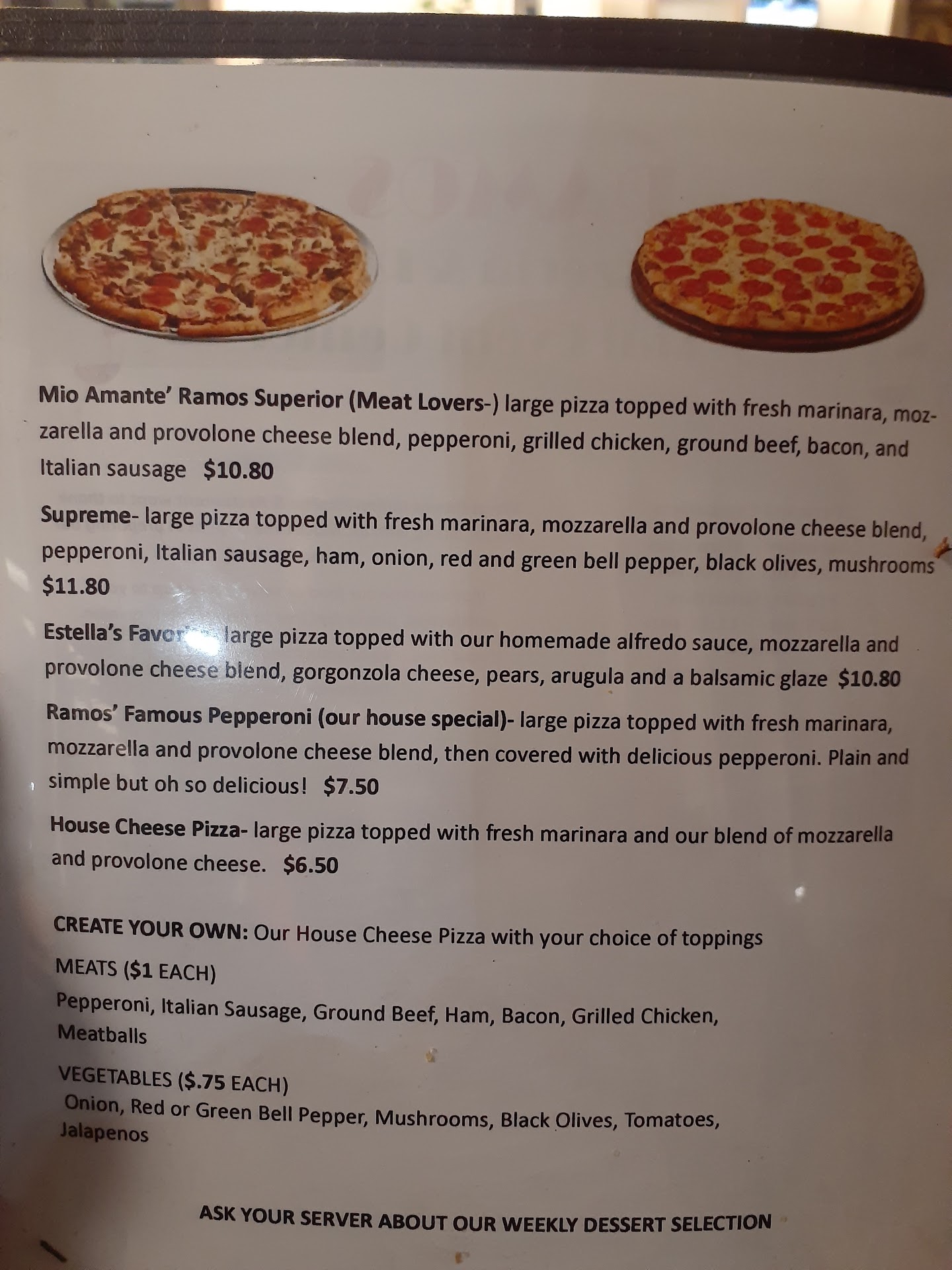Okay: so, when my wife was still with me, we saw this place and since we always liked going to new places to eat, used to stop by to see if it was open. It was not, all the times we stopped. I just stopped looking every time I drove by. But today I saw a "NOW OPEN" sign out by the roadway. I whip the VW around and pull in. Nobody's there. Of course, it's 3:30 in the afternoon...restaurant 'dead time.' Usually shift changes, side work, prepping for evening meal, etc. I'm greeted by the Owner. He tells me they have pizza, pasta... I hear 'pasta.' I stop him. "Alfredo?" Oh yes, he says. I say, "Well, if you can't make a good alfredo, that says everything about your place." He brings out this excellent garlic bread appetizer. So good! 20 minutes later: Chicken Alfredo! So, the alfredo looks great! Smells great! HUGE portion on a 10" plate! ...you can see the butter! I'm ready for mushy disappointment. First fork-full: OMG!! Best...BEST alfredo I've ever had. So freaking rich I could hardly eat 5-6 fork-fulls! Oh, also came with more (larger) slices of garlic bread, which were also perfect. So, talking to Mr. Ramos, he tells me EVERY order is cooked TO order-he makes the pasta TO ORDER...which explains the perfect aldente texture and excellent flavor...so his food takes a little longer. Oh, yeah-total bill was $12.15. I have enough left over Alfredo for lunch and maybe dinner tomorrow. GO NOW! He just got his liquor license and will have a stocked bar soon and will be having Happy Hours from 1-5 in the evening!! Half-price everything! I asked him if he had room for me to put...