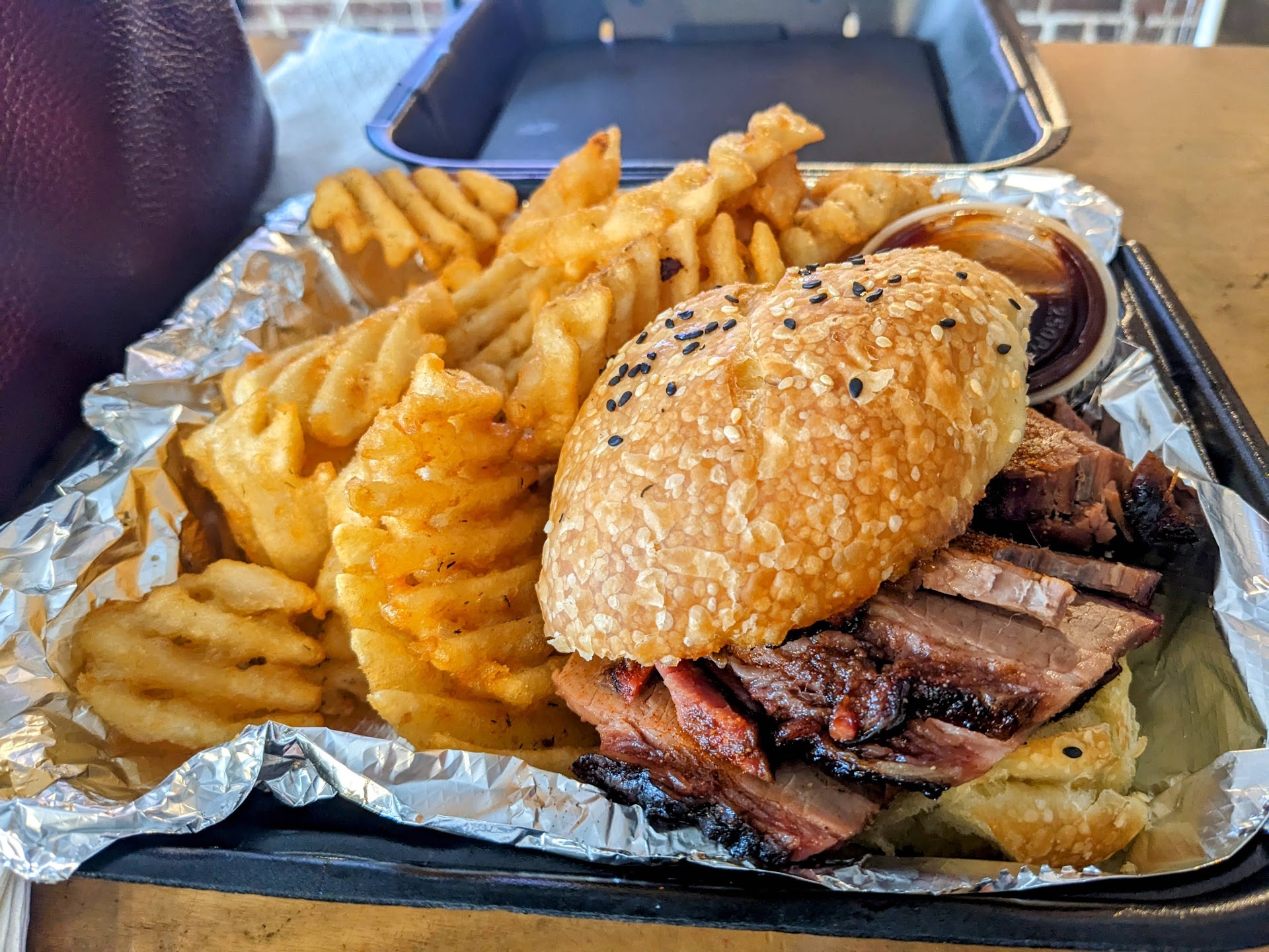 The food is absolutely outstanding and pretty reasonably priced. The sweet BBQ sauce is among the best I’ve ever had. They also have burnt cauliflower ends for those vegetarians out there. They also have a quality beverage selection.