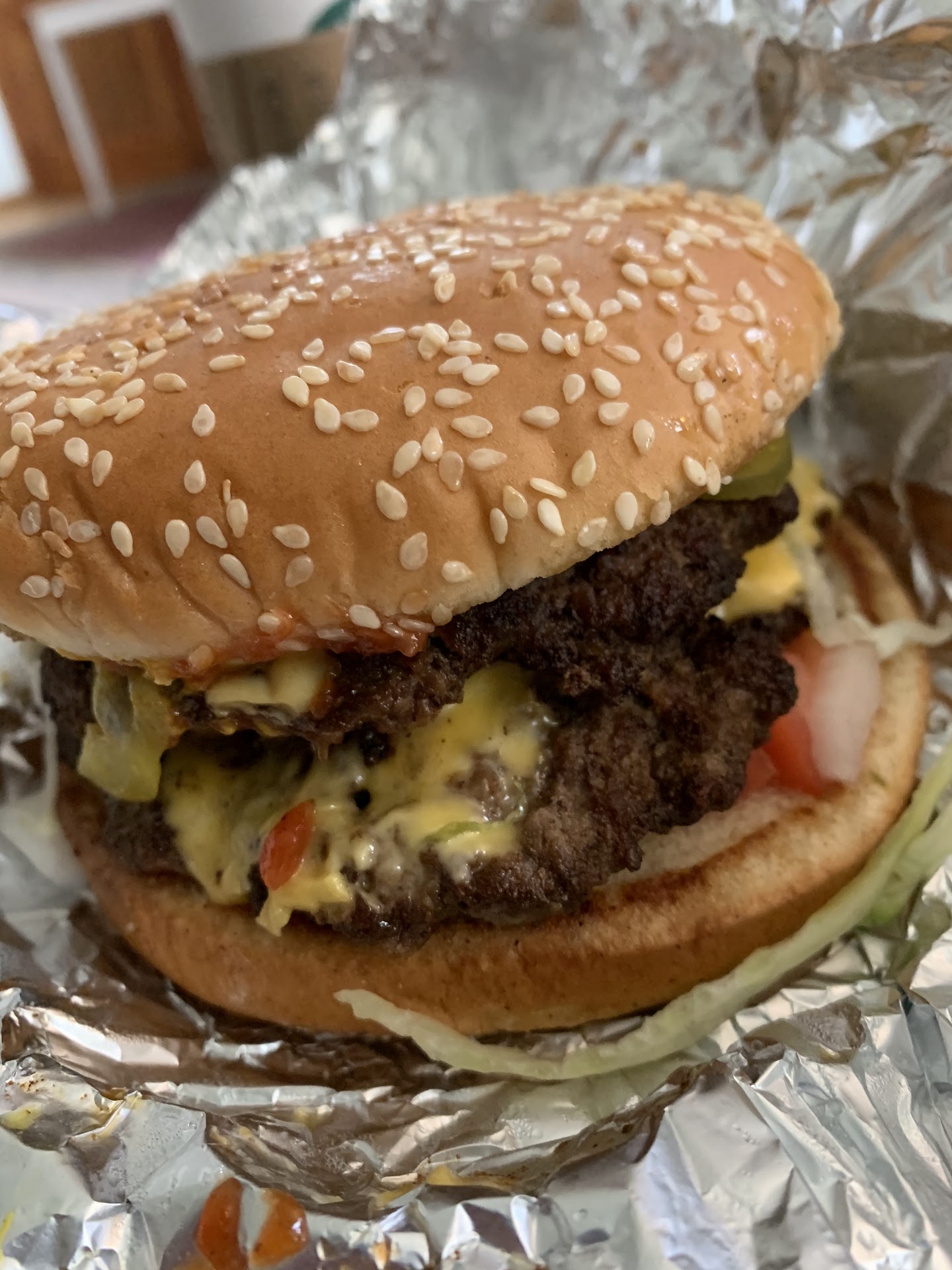 One.Der.Full. Probably double the size of a 5 guys for about half the price. For reference I had the single with no cheese and and everything on it. The burger is cooked to order so a wait will be part of this experience, but it’s worth it.