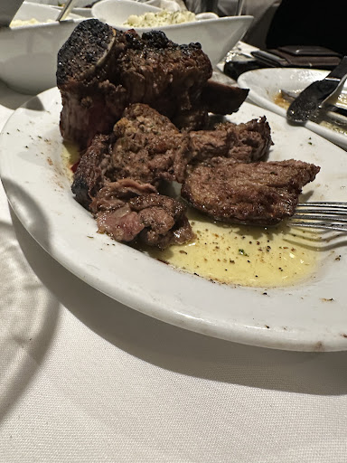 When the food finally came, the issues continued. My son’s steak, ordered medium, arrived well-done, while our bone-in filet was raw. As we cut into it, the waiter noticed and immediately took it away, expressing his disappointment and assuring us he would bring a new one. However, instead of a new steak, he returned with the original one now overcooked. One of our sides was forgotten entirely and only arrived much later—at which point our son refused to eat it. The asparagus was wilted beyond being edible, and the crab cakes were dry, flaky, and similarly inedible. All of the sides resembled frozen bag meals that had simply been steamed or reheated before plating. Given the overall poor quality, we left most of the food untouched.