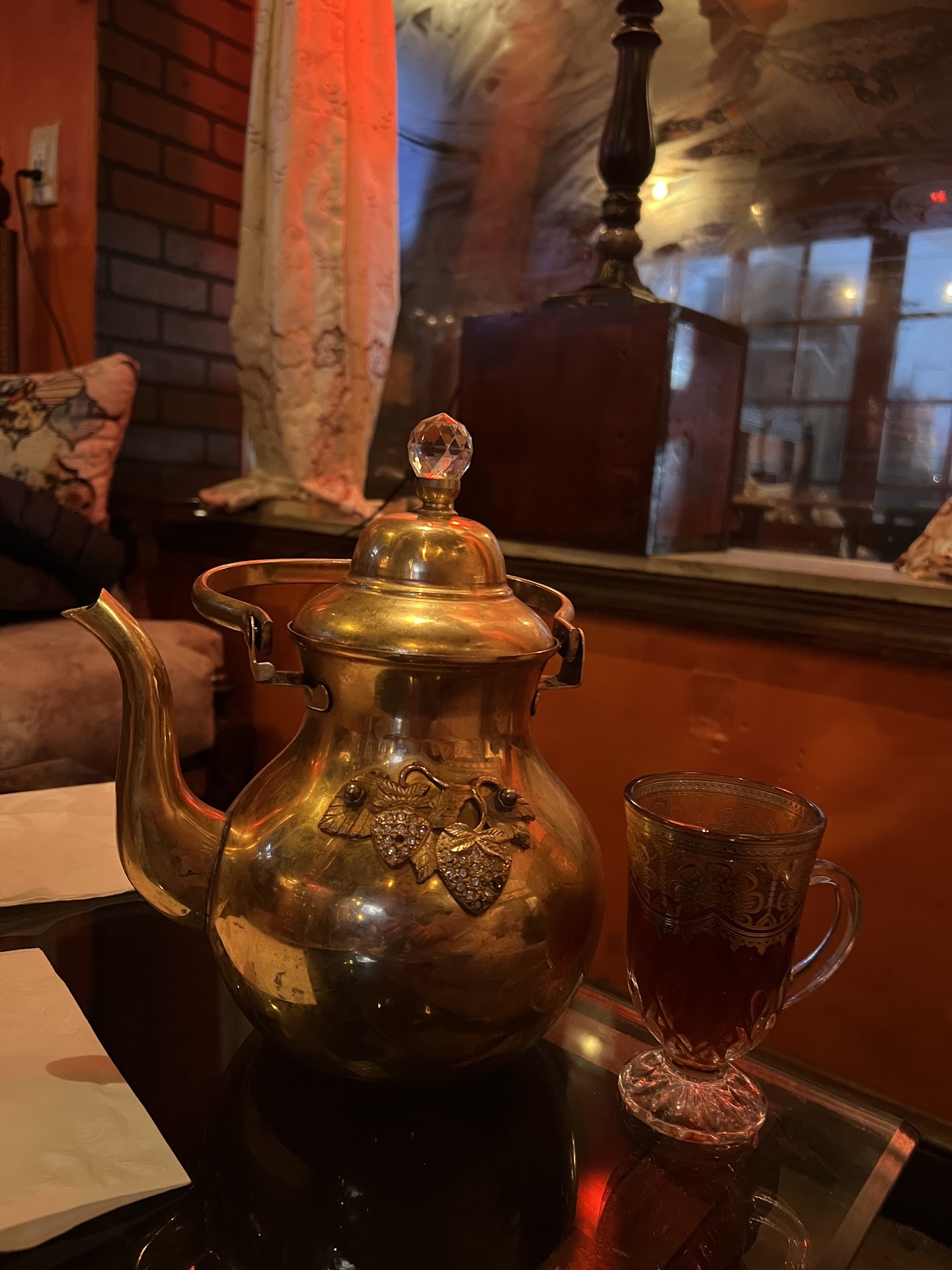 Read moreThis place is a secret portal door where time and space is bent so you step in from Cville, Columbus, Ohio and step out onto the back streets and alleys of Cairo. Authentic, ornate furniture and tapestry, catchy psychedelic Arabic tunes, excellent ice cold hookah with fruit infusion, hospitable , friendly staff, little tasty appetizers ( hummus is excellent). You name it. Itâs obviously a dry spot, but you wonât need fire water for your journey. The ambience alone will take you to a heady trip into the Orient. Aji Maji...