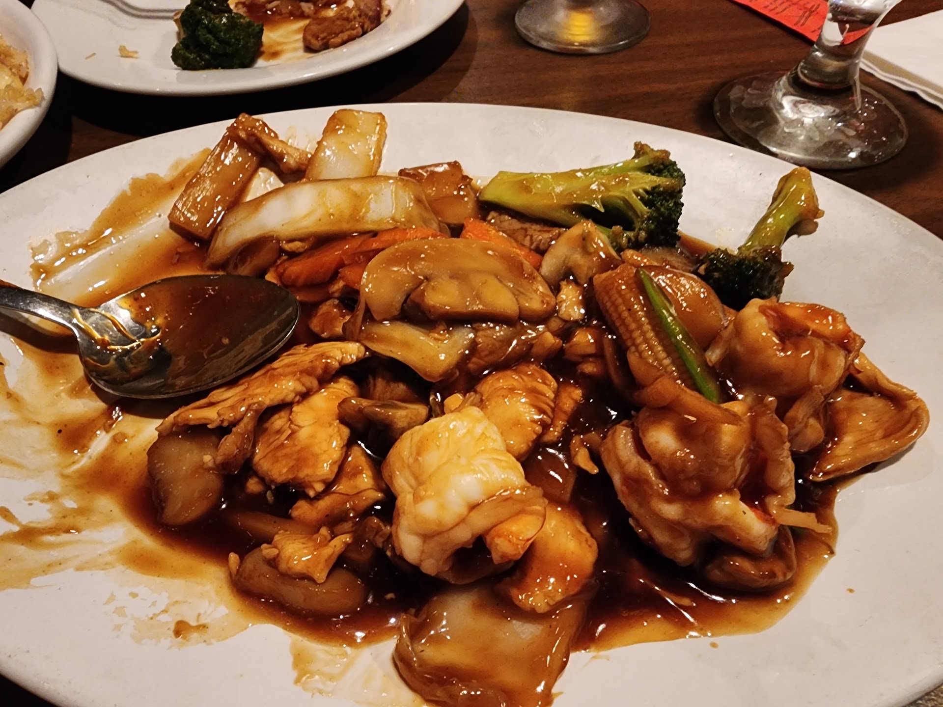 11/21/23- Yet again, another wonderful meal!! Hot & Sour soup, fried rice, chicken, shrimp, beef, and pork...and plenty of absolutely delicious vegetables in a brown sauce! So good!