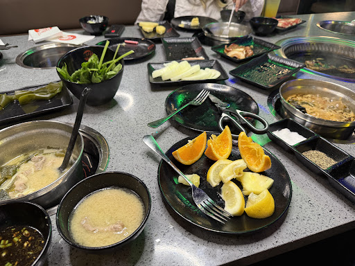 Sauce bar is decent though didnât have a house sauce which was surprising since most do, had lemons, oranges, lemons, watermelon, cantaloupe, I think my only gripe would be that the only two options for dessert was cheesecake and a pudding, think that a bigger variety would be nice only because I am comparing it to other kbqq places Iâve been to and do like cakes or ice cream etc as options at the end Tables ranged from a setting of 2 seats at a table or booths that have 6 settings for hot pot and one grill, the grill is at the end of the table though so do have to have that side of the table do all the cooking basically Also you do have to tell your server at the start what items you want and if youâd like any more you do have to have them come by and put that in for you, not that all places do have it but a lot of restaurants do have tablets to place orders of items onto now so would keep that in mind when going Itâs a nice place a decent dinner location but wouldnât say thereâs anything that sets it apart from others in the area...
