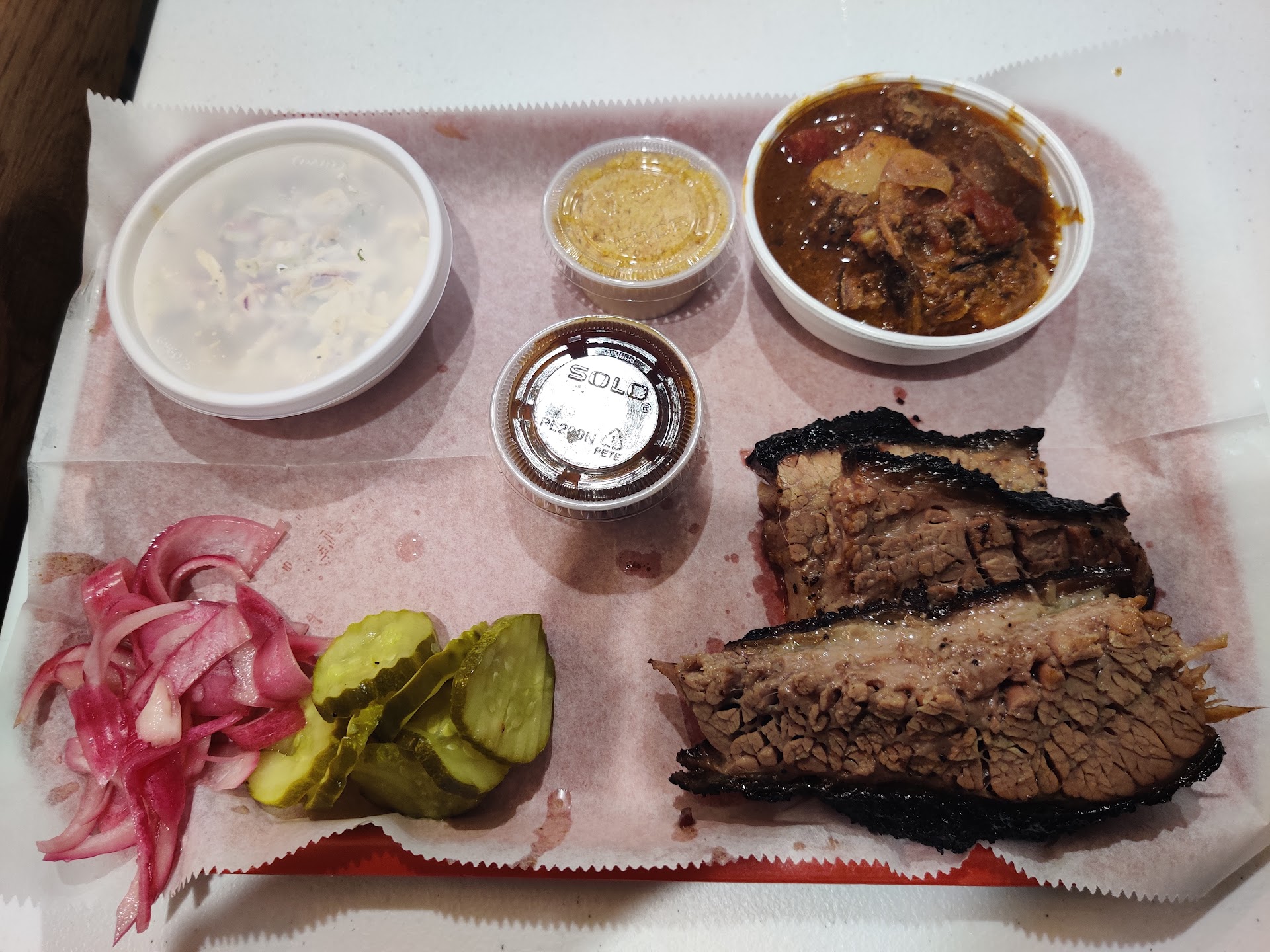 We got some brisket of course. On the lovely lady's suggestion at the counter, we tried the spare ribs. We also tried the coleslaw and mac and cheese, and all three sauces.