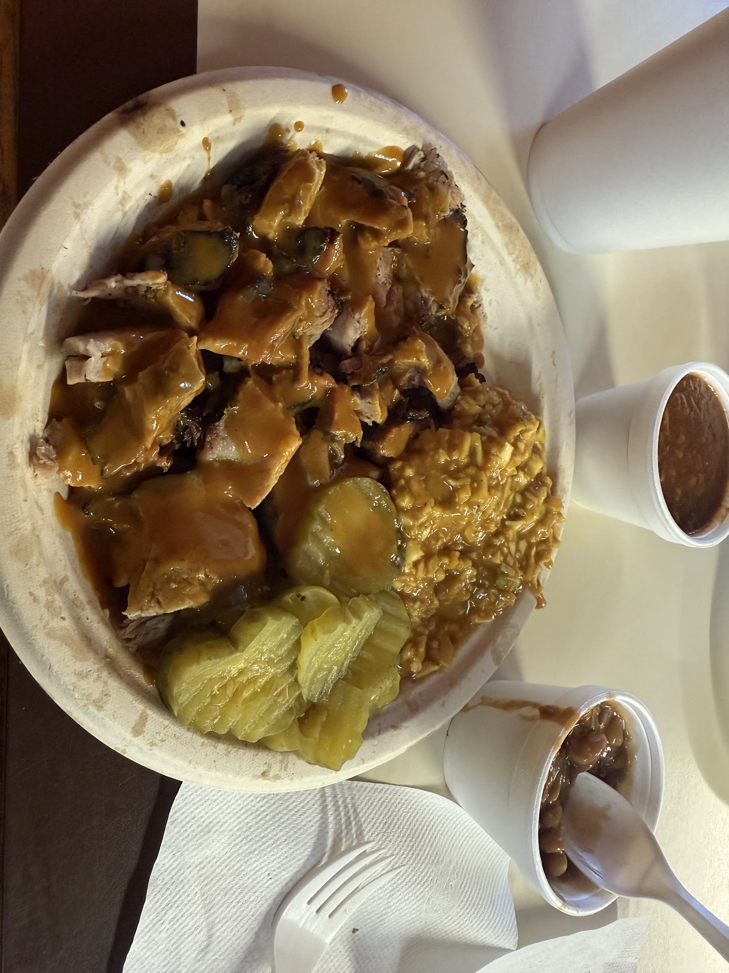 Ā Ā Ā Read morePlace is great. BBQ is so good and the ribs come off the bone. Came here on a whim. I already knew this place was going to slap from how the building looked and the smoke billowing out. They will cut the bbq to your liking which is a huge plus to me because I donāt always want my BBQ pulled and shredded. With any plate comes with pickles, coleslaw and 2 pieces of bread. Nice touch. I usually only go to BBQ places for the meat so I canāt comment on their actual sides but my parents loved the Brunswick stew a lot. People behind the counter are really nice and friendly. You can even see them cooking/smoking the meat which is always cool. Only thing next time is Iād ask for the sauce on the side, I really wish I could just taste the meat by itself and wasnāt a fan of the coleslaw. Other than that highly...