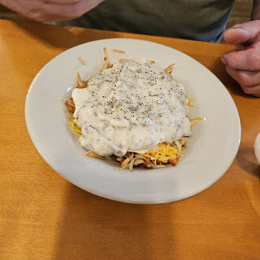 Read moreFirst time visiting and not sure we will be back. For those new to this restaurant, you order at the counter when you walk in and then you can take your seat. You are asked to tip prior to service. We regret that the most. We were assured that although the wait for food was 45 minutes, we could sit and we would have drinks. 20-30 mins later no drinks, no sight of a waiter/waitress, but all the parties of four sat after us had their drinks and introductions to staff. We finally gave in and asked the hostess how we go about getting drinks and she went to the back immediately and retrieved them. From then on it was an absolutely nightmare to get refills. I stopped one waitress and let her know I was sorry but didn't know who our waitress was but could we please get a sweet tea refill for my husband. The look of disdain on her face had me never to stop someone again for a refill. One gentleman came by, one time, and asked if he could refill my long empty water. I was grateful. The coffee refills are relatively easy to get as they seem to go table to table looking for the cups. One elderly couple even got coffees to go, lucky.. not so much for us. We were left parched. Finally our food arrived and we had to ask for silverware. Glad my husband remembered otherwise I would have had to catch someone in passing again. The food was mostly great, to me.. but for the price point and terrible service, it just doesn't balance out. My eggs were not edible and I passed them to my husband. I had asked for over hard and they were runny. I can't stand that. Atmosphere was ok. Just overall...