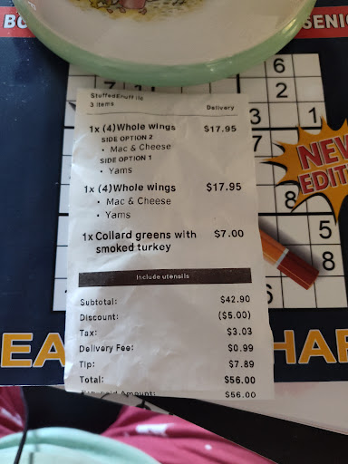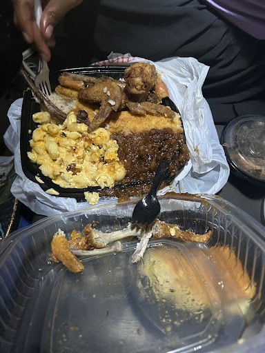 We ordered the 2 stuffed platter with fried lamb chops, and they handed us plain chops like we wouldn’t notice. The chicken? Rubbery and bland. The fish? Soggy and swimming in baked bean juice. The mac? Greasy, crumbly, and straight-up sad. The greens and turkey? Dry as the desert. The cornbread? ICE cold. And to top it all off, they swapped out our yams for baked beans WITHOUT even saying a word. Who does that?