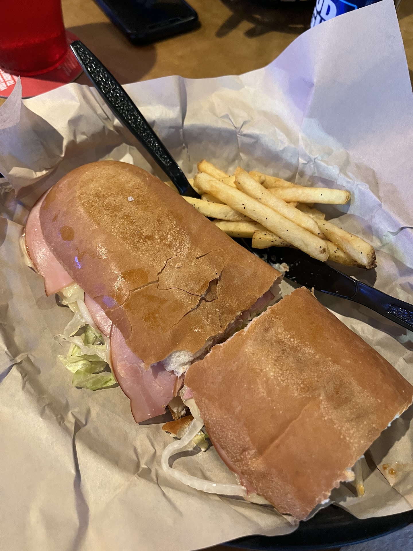 Overall the service was good. The place was clean. Many TVs to watch sports. The volume was really loud and couldn’t hear anyone at the table. But they turned some of the sets down by us which made it more comfortable. Large bar and didn’t bother the “family” side of the place. Looks like a great place to watch sports, drink beer, have some appetizers and hang with friends. Unfortunately I wouldn’t go to the submarine house for another sub. If I want to pay a high price for a sub I would rather go to jersey mikes over this place. And if I want a awesome cheesesteak I would visit penn station subs. However to hang with friends and drink some I would...
