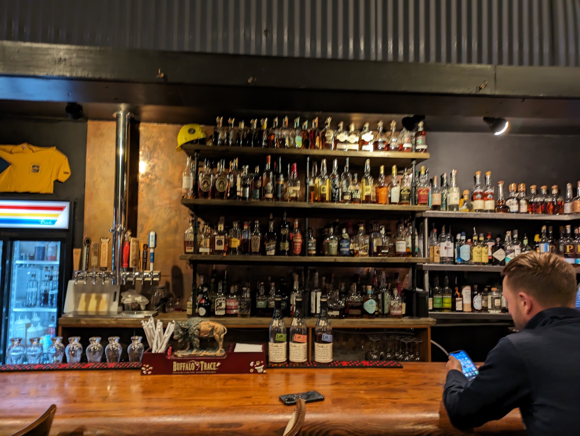 Keyarra with Offline - We visited this restaurant on a random week day we started with the Fried Green Tomatoes that came 3 slices with pimento cheese and hot honey. I didn’t even want to finish eating them if it wasn’t for the pimento and the hot honey being so so good( I don’t even usually care for pimento but it was that good). The tomatoes weren’t cooked through enough for me, had absolutely no flavor. After that I was a little nervous to order anything else with that being the first impression, but I ordered the Country Fried Chicken served with Brussels sprouts, mashed potatoes, and peppercorn gravy. My husband ordered the Grilled Bone-In Porkchop served with Cheddar, pepper jack, bacon and andouille, mashed potatoes, roasted broccolini, and Carolina BBQ sauce. When I tell y’all that Country Fried Chicken was SO good! It was perfectly seasoned (don’t get if you don’t like pepper it’s very very peppery with the peppercorn gravy) and perfectly crispy. The Brussels sprouts were great they drop them in the deep fryer which gives them a great crispy texture, and fried flavor. The mashed potatoes had a balanced flavor and the gravy definitely magnified for a more intense flavor. My plate was very savory, fulfilling, and satisfying. My husband let me taste his dish as well the grilled porkchop was very very good loved the added cheeses and meats! The broccolini had a grilled taste as well to match the porkchop and was great. My husband even liked the flavor of the broccolini though he doesn’t like broccolini typically. We ordered the Derby Pie served with ice cream for dessert. The Derby Pie was like a mix of Pecan pie and chocolate chip cookies with big chocolate chip morsels. Never had anything like it was surprised at how good it was and the crust was perfectly flaky and buttery. Our server Mike, provided great service and was very down-to-Earth and personable. Overall we will absolutely be back I left full,...
