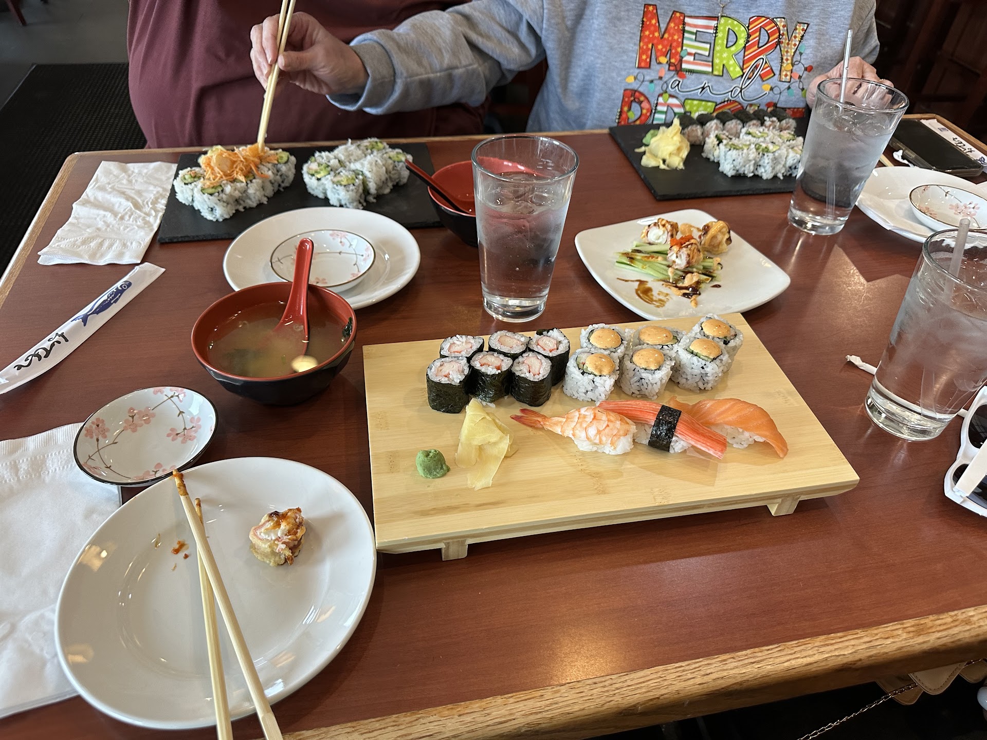 Read moreWe had not been there for a year or so. Sushiko is our favorite sushi restaurant. But we were at the movie next door this evening. It started fine. We ordered an go the drinks and gyoza came out quickly. The gyosa was not hot. Then a couple of minutes later, our salads and soup, and a plate of ika salad, seaweed salad and edamame came out, all together. There wasn't room on the table. The edamame was cold and unsalted. And then two minutes later, c a plate of sushi arrived. All this and then two minutes after, the teriyaki salmon and chicken arrived. This is a menu item, a two person dinner. And literally it was all placed on the table within fine minutes from start to finish. Lots of food, some getting cold. As other people have stated, the sushi was ok, the edamame blah, but the teriyaki items were very overdone. Like they were pre-prepared and warmed for serving. Then after we finished all this food, inexplicably we waited 15 minutes after our last plate was removed to get the dessert that came with the dinner. And we had put our dessert choices in with the...