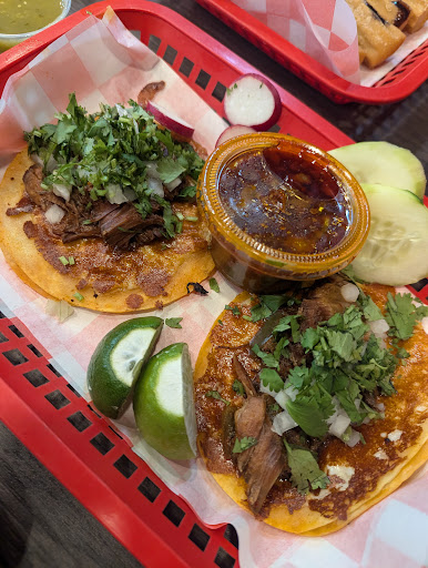 Read moreTried Birria Pizza for lunch today. It is basically a larger casadilla . It is tasty and filling. Ordered sides of refried beans , rice, and Maduros. The beans and rice are 1 lbs and are $5 each . Beans are not terrible, very average . Rice has peas and lima beans in it . When you enter the carry out head to the back to pick up your order , it's a little confusing where to order or pick up. 3 small tables in the back if you wanted to dine in . The staff I encountered were friendly and attentive. Orderer online , qouted 15 minute pick up time . My order took almost 45 minutes...