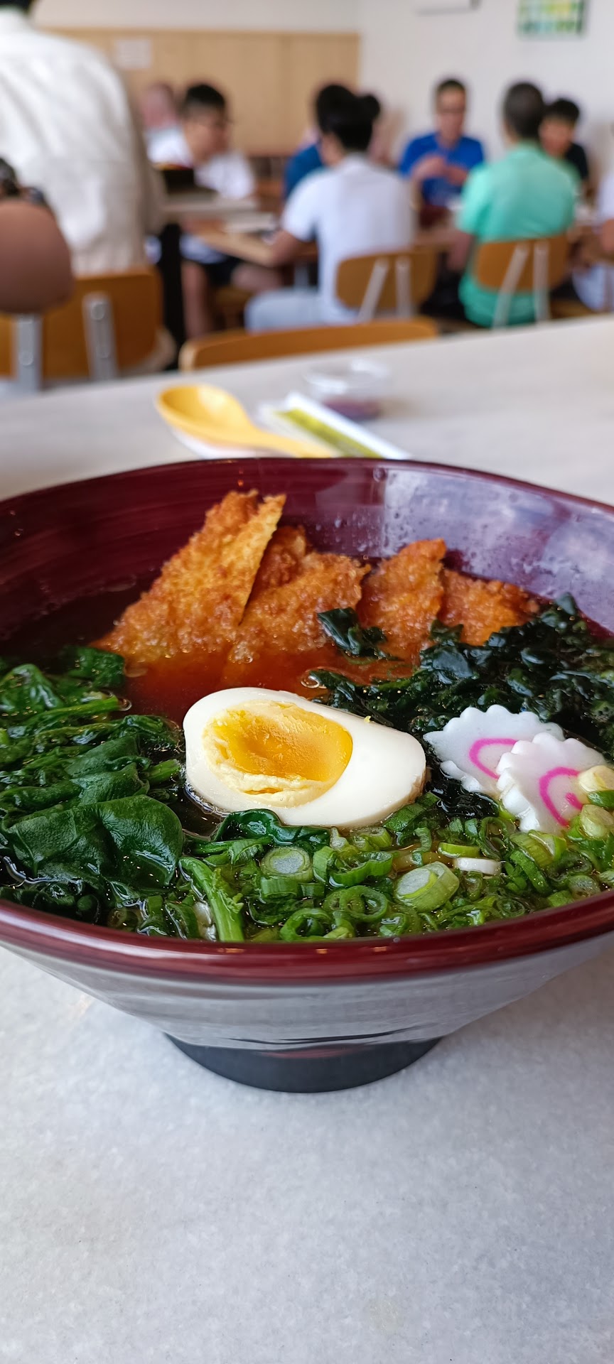 The interior is cheerful, very clean, modern, spacious, and brightly-lit. We grabbed our Calpicus and ordered identical number 3's, ramen with pork cutlets. All I can say is ORDER NUMBER 3! ๐
