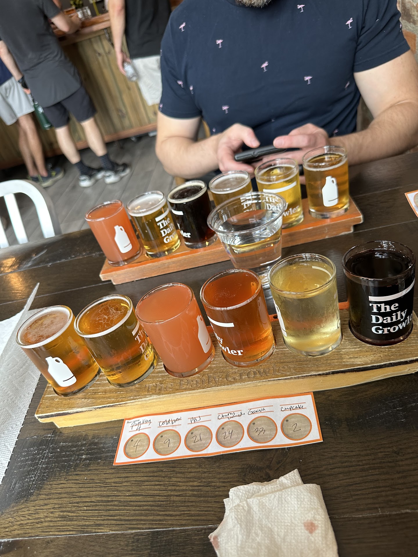 Read moreWe were out walking around German Village and wanted to chill somewhere for a while. Walked over to the Daily Growler and we each had a flight (6 beers 4-5 oz). They are all mostly from local places with a few from craft breweries outside of Ohio. One being Pumking that I look forward to every fall. đđ» Loved each one except a red velvet cupcake beer⊠it was syrupy and I couldnât do more than a few sips. Derive brewing had an Uncrustables PB&J that was by far my favorite. My husbandâs fave was the Rhinegeist Arnold Palmer. We split a bag of pretzels and played uno for a couple hours. Great place to just hang out for...