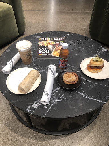 Ordered an iced carmel latte, breakfast burrito with hot sauce and sour cream, apple cinnamon roll, apple juice, and a Nashville hot chicken biscuit sandwich. Breakfast burrito is filling and latte was delicious. The apple cinnamon roll and juice were a hit for my toddler, and my husband loves the Nashville hot chicken biscuit sandwich.