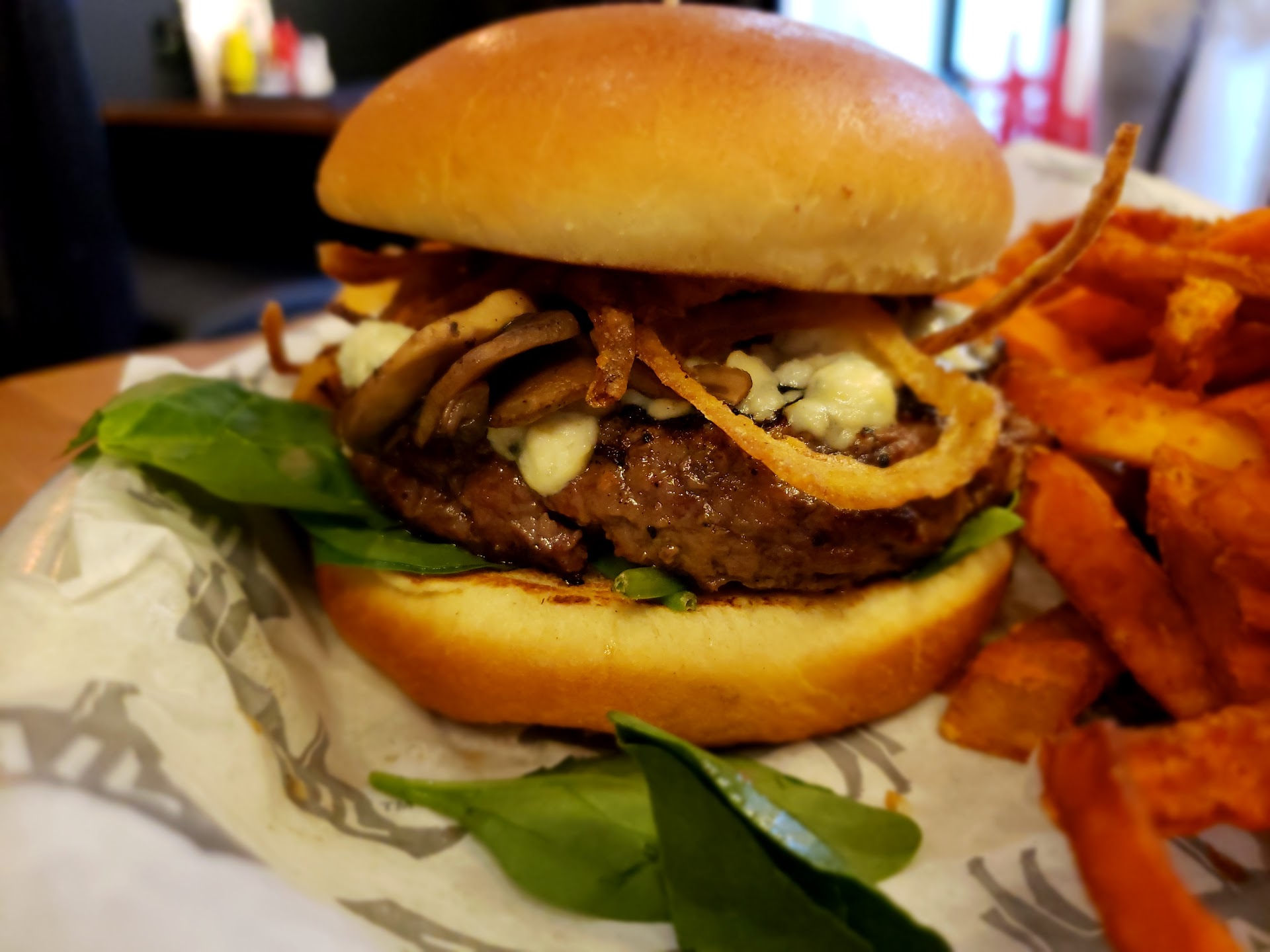 Ā Ā Ā Read moreKind of a fancy burger joint. They source almost all their products from Ohio so that's pretty cool. We started with the Mojo cheese dip which ones with tortilla chips. Pretty tasty. We both had the Blue Bessie Burger but I opted to have mine without the horseradish sauce, although I got it on the side and I'm glad. It was very strong so if you love horseradish this is definitely for you. I ordered my burger medium well and husband ordered his medium. Both were cooked perfectly! The Bessie comes with blue cheese, sauteed mushrooms, spinach and tobacco onions with the horseradish sauce and it was pretty darn good. It comes with skinny fries (similar to Steak & Shake). For a 2$ up charge I ordered sweet potato fries. They were perfectly fried, not too crunchy or soggy. My husband is not a fan of skinny fries but said they were pretty good. We also had a couple beers. I tried a Braxton pumpkin spice ale and it was just okay. I'm not typically a fan of ale but I do like pumpkin spice so thought I'd give it a try and I wasn't disappointed. I wish I had ordered what my husband got, and that was a Great Lakes Ohio City Oatmeal Stout. That was fabulous! We'll definitely be going back if for nothing else, for that GL stout! Also, props to Austen, our amazing server. He was very knowledgeable about the food and where it all comes from and also about the wide variety of beers. He was appropriately attentive without being annoying. We were in and out in about an hour. If you like a nice burger and supporting local ag. this...
