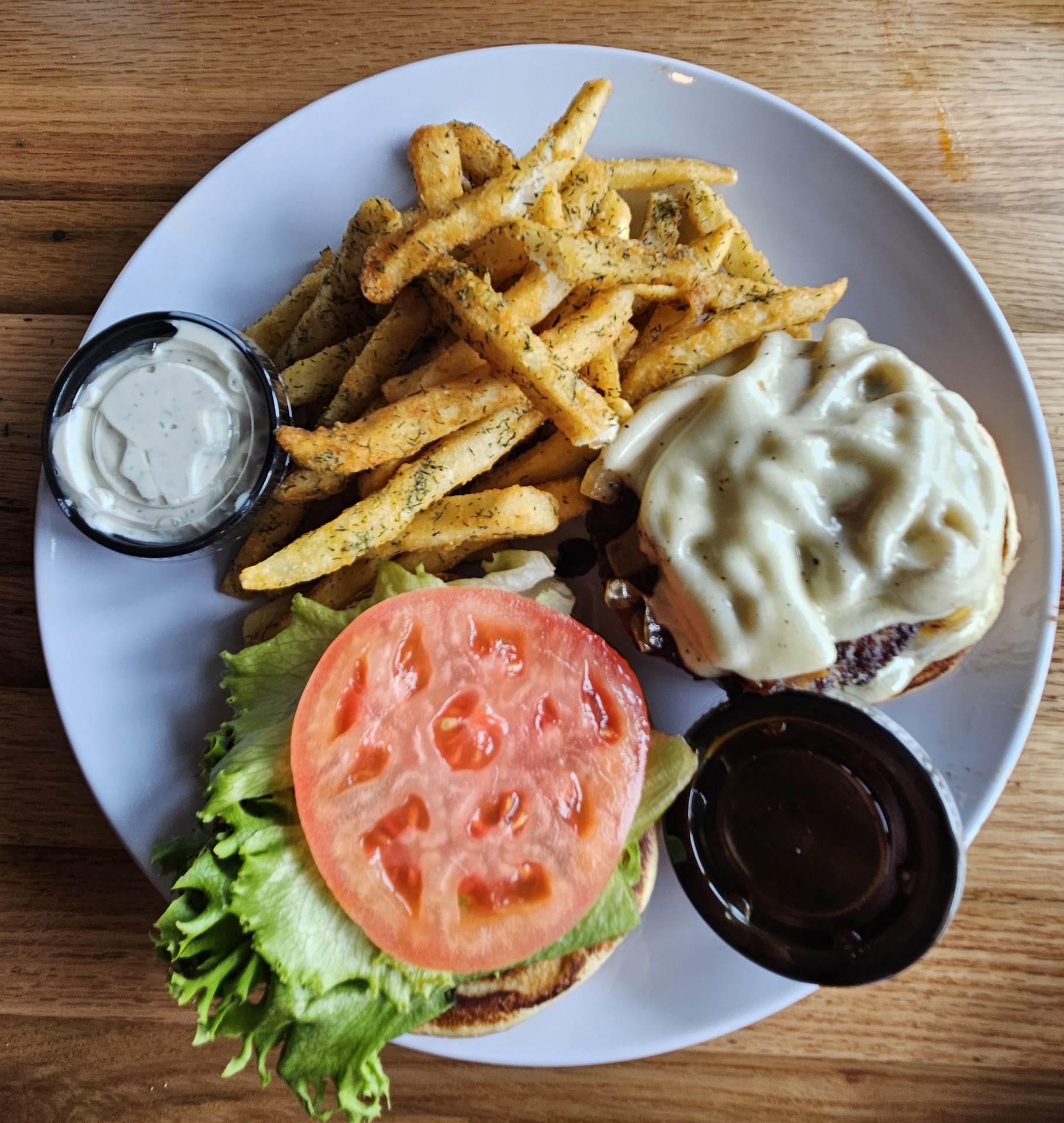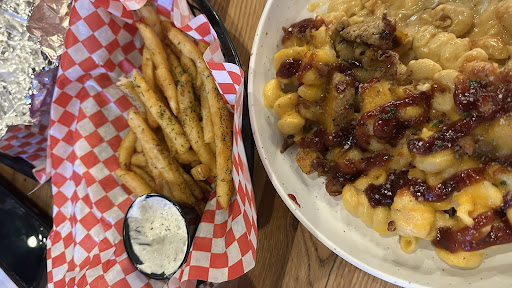 Read moreFirst time here.. 3 to 4 stars. Had a steak smash burger, large pizza with pepperoni and red peppers, two drinks 16 oz, two pieces of cheesecake... $70ish.... Atmosphere is super chill, you pick your food out when you walk in the door and then pick a seat anywhere that's available, there are multiple TVs to watch everywhere or you can sit at the bar. They bring your food out to you and although it's not a traditional, waiter/waitress because they do not come back to check on you... There were plenty of people floating around to ask for anything if you needed it. My husband really liked the burger, tasted like steak and the fries were like dill seasoned and really good! My pizza had a ton of cheese on it which I love cheese but it was so greasy, it was just pouring off of it, I would definitely have liked a more cheese and sauce balance. The crust was thin and crunchy but airy which was really good. They have Pepsi products at a self-serve station as well as a bunch of beer across the wall. Of course the best part of all in this place is the fact that they sell Mama kay's cakes and cheesecakes!! If you don't know what I'm talking about or you have never had them at one of the other dining establishments in Columbus or Midland, you are missing out! We got the banana pudding cheesecake and a plain cheesecake with strawberries and caramel... These cakes and cheesecakes are just phenomenal, there are no other words. They are a bit pricey at $11 a piece for the cheesecake but honestly it's worth it so it doesn't matter.... Honestly the whole menu is a little pricey. We did go on a Saturday afternoon around 12:00 p.m. and although it wasn't busy when we walked in it got busy very quickly... I would go back though and...