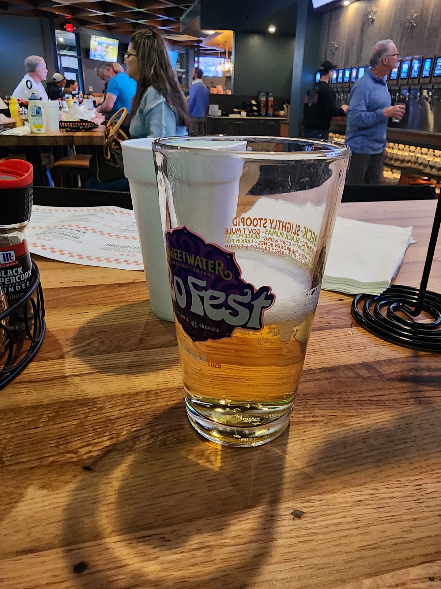 The person who took our order didn't tell us about the $2.50 wristband. It's refunded, which I learned after asking as I looked at our receipt. The Beer Wall was neat, but deceptibly expensive. You pay by the ounce. I MIGHT have had 2 beers (24 oz) I'm sure hubby did. He also had a house salad and 12 wings. I had the chicken fettucini and greek salad with a piece of cheesecake. Our bill came to $111.26 which includes a 15% tip.