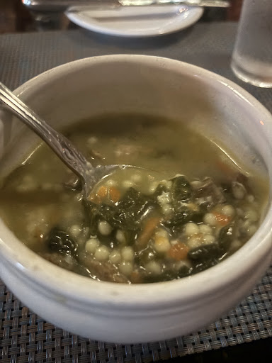 I had never before heard of cannelloni but what had been brought to my table several minutes later had been very similar to three burritos covered with two different flavors of sauce. My meal had been served with ciabatta bread and herb butter. I had also had the choice of an Italian house salad or a bowl of wedding soup; I chose the bowl of wedding soup.