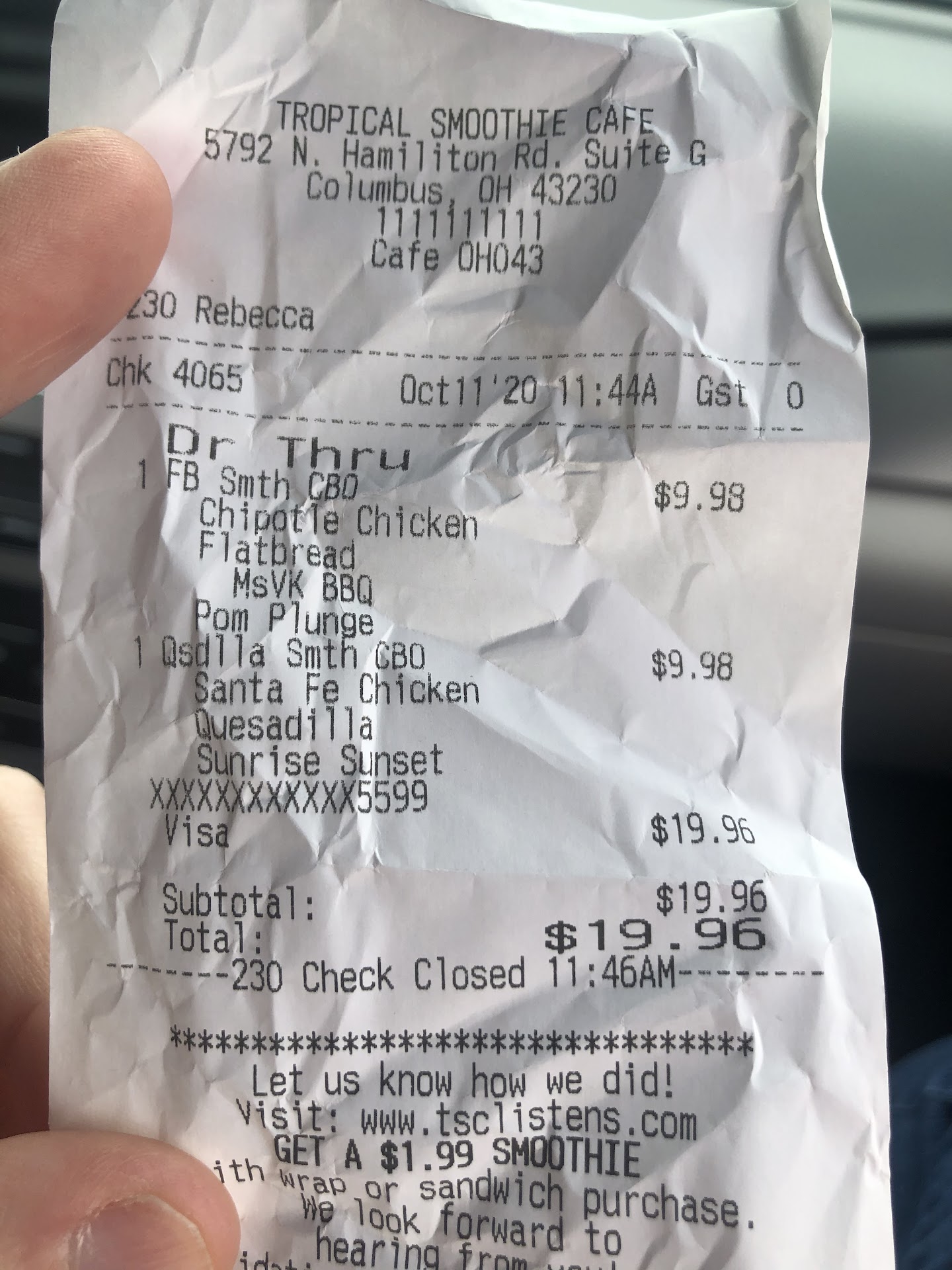 Read moreChanged my 5* review as this place is rapidly going downhill. When the food is good, it's really good. I order here often and can't say that it's been good for at least the last 9-12 months. Also, beware ordering delivery from their app. If anything goes wrong with your order, neither the restaurant or doordash assumes liability. In my case, I ordered 6 breakfast wraps and 4 smoothies to be delivered for my kids and the sitter to have breakfast on Christmas Eve while I was out finishing my Christmas shopping. Only the smoothies were delivered, no food. I called the restaurant and they said to contact doordash. Doordash said that since it was through TS app and not actually through DD that they couldn't do anything for me either. I called the restaurant back and explained this, and they said they would investigate and call me back. Long story short, I never received a call back, my kids never got their sandwiches, and I canceled my doordash subscription. I lived in Florida where I was first introduced to Tropical Smoothie and fell in love. I think I'll just save it for a treat when I go back to visit because this is not the same experience or quality as I receive back home. Disappointing because I met the owner when they first opened, and he seemed so passionate about his...