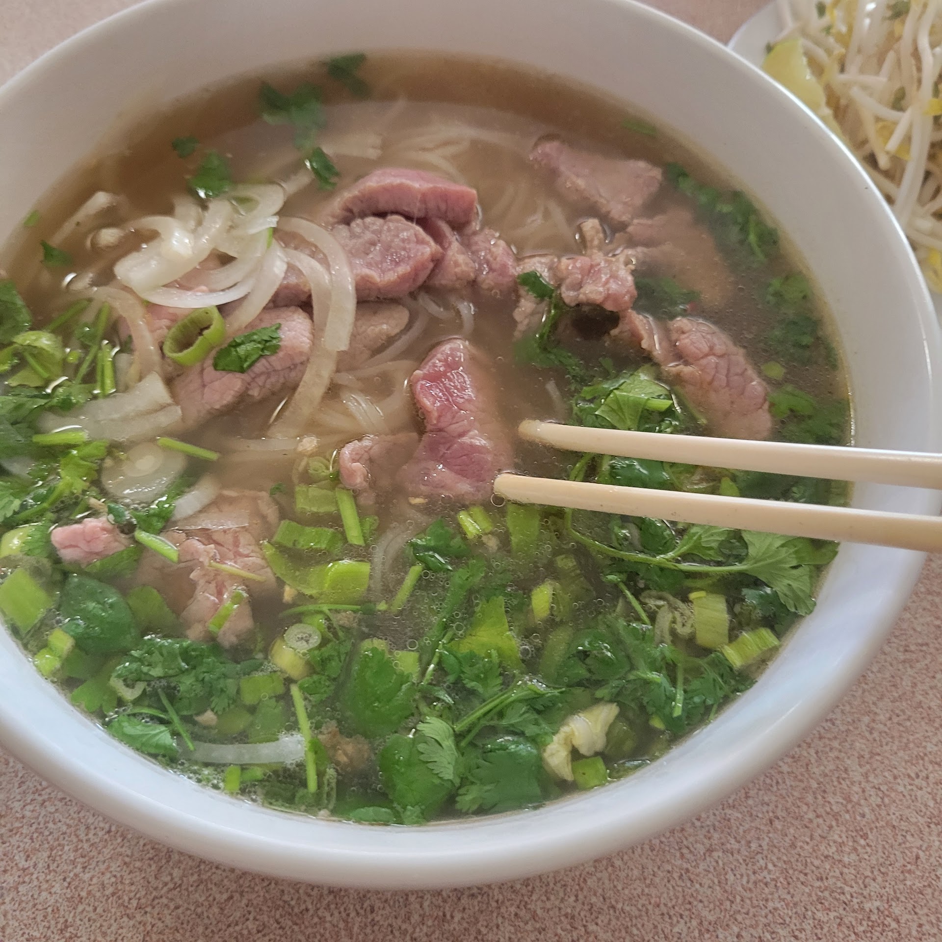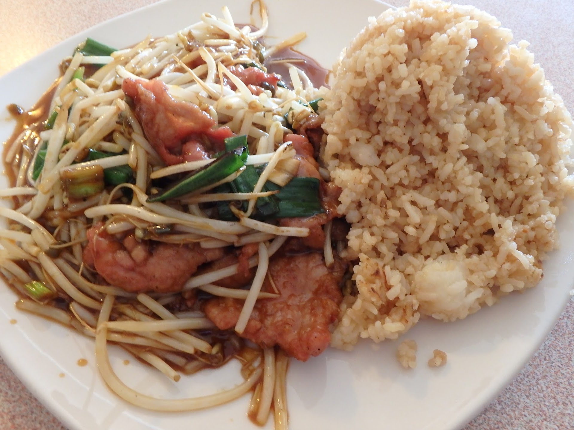 I usually plan where I am going to have a meal that I review. Anyhow,, I was wanting lunch and was on Phillipi Rd and knew there was an Asian restaurant close by. So I decided to try The Twin Sunlight. The Sunlight is small family run affair, just my kind of place. Its a mix of Asian food styles. I chose the Pork with bean sprouts, lunch size. After seeing the nest table served their Pho ( vietnamese soup ) I wished I had ordered that. O well such is life, well, my life anyway. The pork w/ bean sprouts was served fast with a side of fried rice. It was cooked perfect, the protein well cooked and the bean sprouts warm and still crunchy. They added nice slivers of onion greens to the bean sprouts and a rich soy based sauce. The fried rice was also well cooked and just sticky enough, but had a bland flavor. A little more egg and some onion would have helped the fried rice. The portion was slightly small but over all the meal was very good. I noticed the reviews of the Sunlight were either good or bad. Its strange how people can have such polar opinions of this restaurant. As for me, I'll be back, I have to...