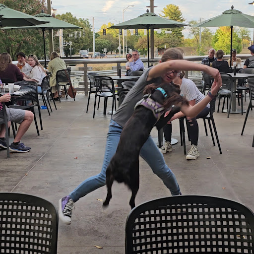 Read moreStopped by here after a dog show with our dog on 9-24-23 and we ate outside on their awesome above ground patio (they also have a ramp for wheelchair access). We went to the patio directly from the parking lot. You just walk around to the backside of it and you'll see a wide ramp that is large enough for cars and you walk up a few ramps to the patio. We called ahead to make sure they allowed dogs. Very friendly staff, awesome, tasty food and really wonderful ambiance. They play music as well. The patio is great and the inside was really cool also (checked that out to and from the restroom). We both ordered pizzas (I think 14in) and shared spinach artichoke dip. Yum! Our dog is a show/sports and performance dog so my daughter SkyeIar put on 2 little performances (for free of course) for everyone to be able to have some fun. New people came and others left so she did it twice. Also some staff missed the 1st perf. so she did it again. She showed off some tricks a 3rd time right before we left for a couple that had just arrived. P.S. Skye's dog is a female Boykin Spaniel named Emi and they have an IG account if you want to follow them. Boykin.freestyle.101 on IG. Almost forgot, the staff gave her a water bowl also. They are amazing and so accommodating. I was very impressed with absolutely everything. I highly recommend...
