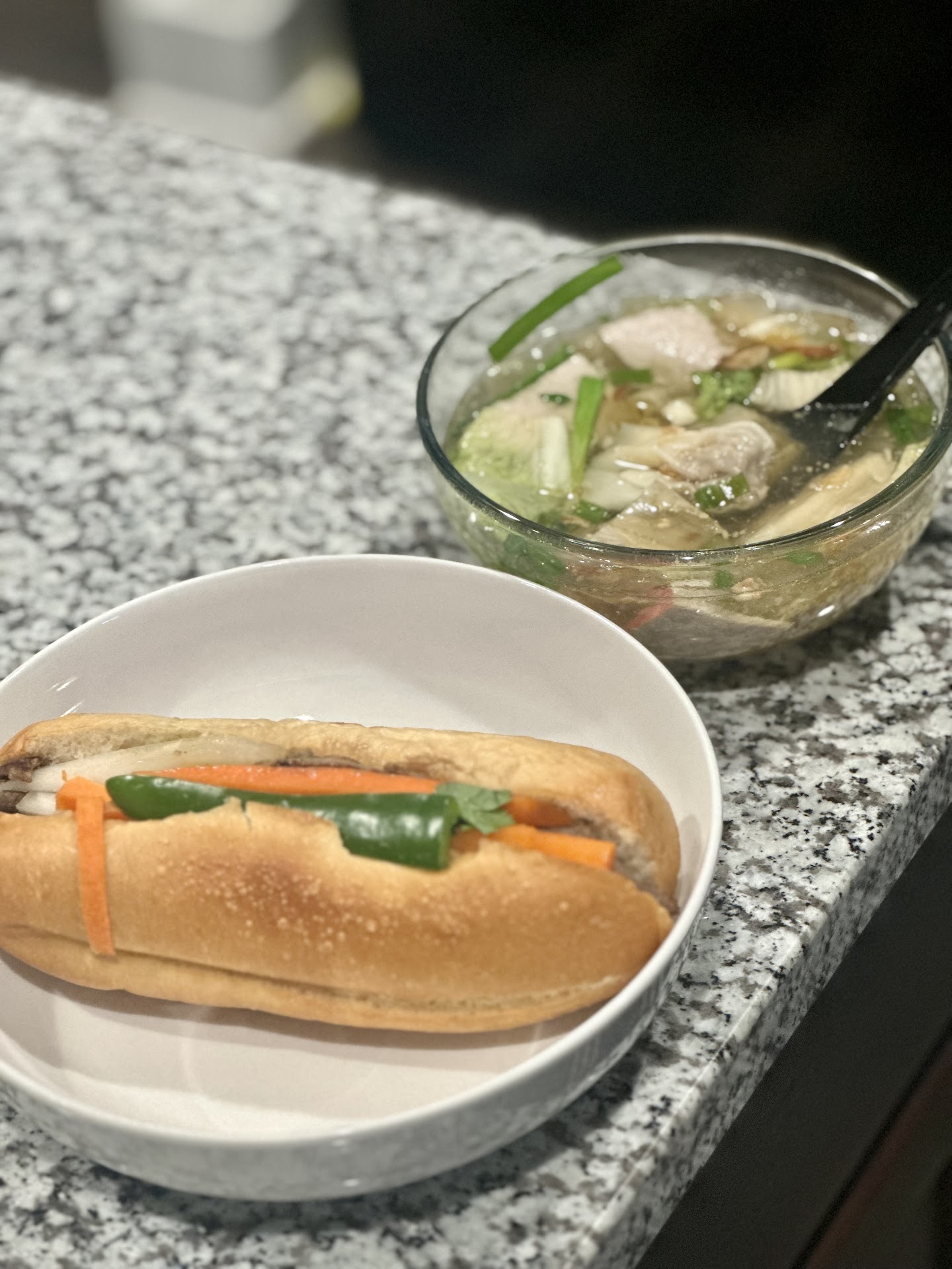 Read moreMy daughter craved some Pho noodle and I came for the Banh Mi (Vietnamese) sandwich. I'm a little biased since I'm Asian but the broth for the Pho soup was not as good as my mom's. The broth MAKES the soup. It's requires a lot of time to slow cook the bones and vegetables so that it imparts the right flavor. The broth here was bland in flavor. But if you're never had good then you'd probably wouldn't know the difference and this would be pleasing to your palate. I was hoping the grilled pork Banh Mi sandwich would be as good as I had at other Asians restaurants. While the grilled pork had a good flavor, the sandwich was "dry." By dry I mean there weren't any sauces on the sandwich. I was expecting a little mayo to help lighten the sriracha and to bring the other ingredients together. The sandwich is 6 inche french bread bun halved and stuffed with your meat of choice, sliced cucumbers, cilantro and Vietnamese pickles (daikon radish & carrots). I really like more pickles on my sandwiches then what they give me. I did ask for mayo, which they didn't have of course. To help make my sandwich better, I did put some sriracha sauce on it. I've had Banh Mi sandwiches from Atlanta and Newnan's Asian store that tastes much better and cheaper. $3 (Atlanta) & $3.50 (Newnan). They did serve Boba tea and smoothies. I did enjoy...