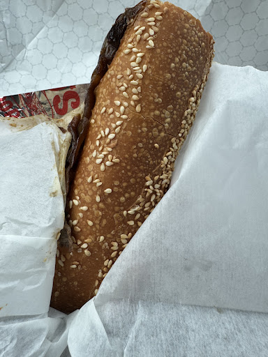 The bread? A seeded semolina roll. Nutty, chewy, crisp outside, airy inside. Not filler — a foundational flex.