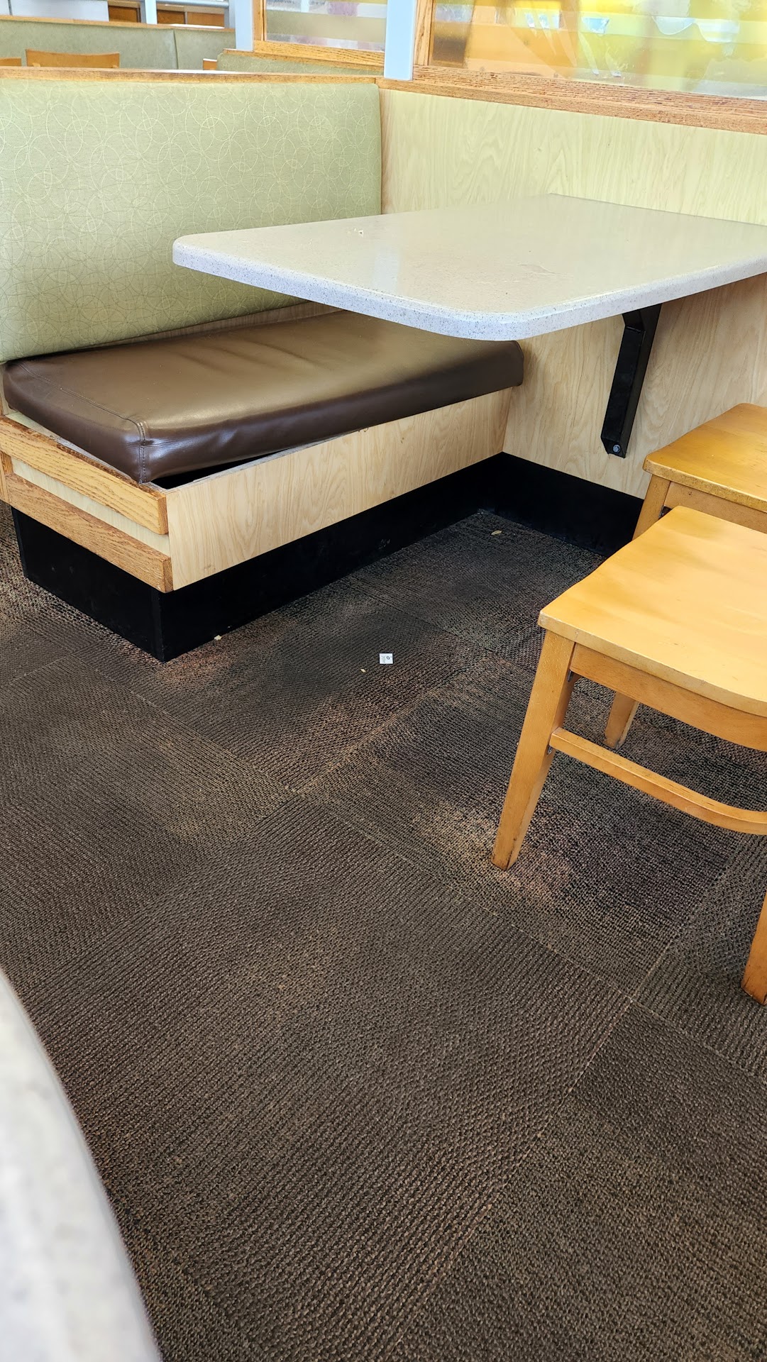 On to the dining area - Literally nothing is clean in this restaraunt! The floor was greasy, the drink and condiment stations were poorly stocked and obviously hadn't been cleaned in hours. Every table was dirty and the windows were dirty inside and out.