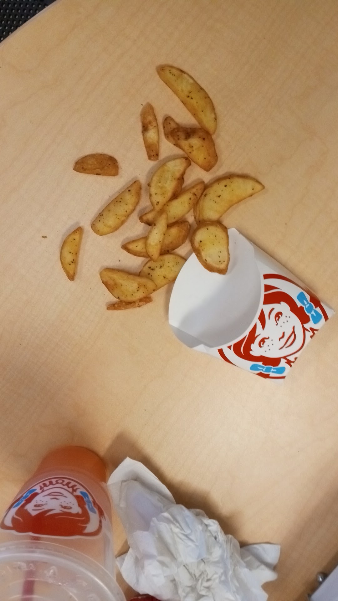 On Saturday August 30, 2025 in the afternoon, I stopped here to get an order of fries and drink. While at register I decided on a Biggie Bag with chicken sandwich, large fry and large drink. Also ordered a second large fry. Upon looking at my receipt, I realized there was only 1 large fry and tried to get the young lady that took my order, get her attn. she was busy with a customer ahead of me in line and ignored me and the next two customers behind me in line for approximately 7 to 8 minutes. Finally after getting the order ready for the lady in front of me in line she turned and saw that I was still standing at the register, and that there were now two other people behind me in line. She came over and I explained that I wanted 2 large fries and not just the one with the Biggie order. I told her I still wanted a second order of large fry and asked her to ring up a separate order.