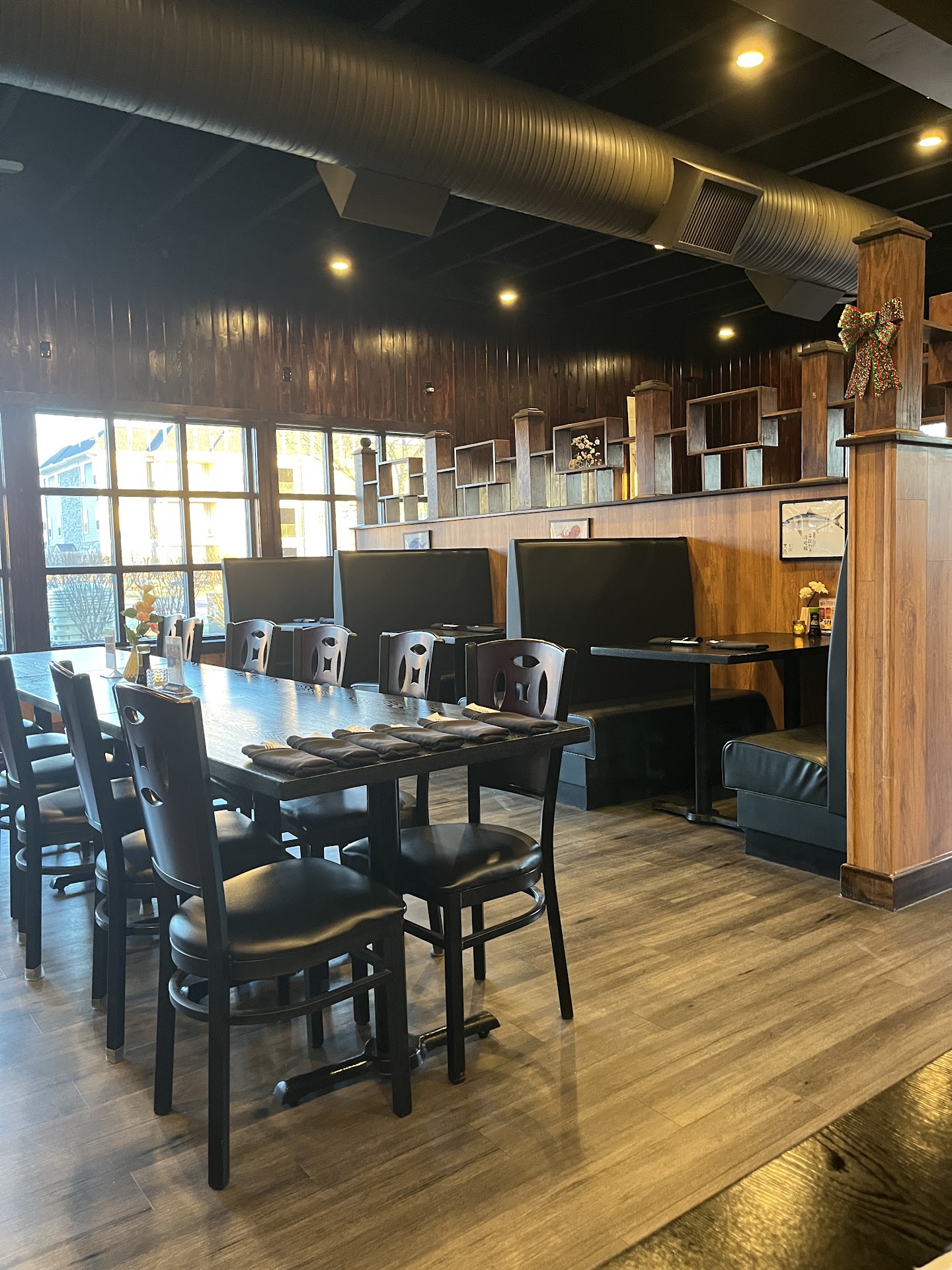 The sushi bar and adult beverage bar were sectioned off from the tables and booths, giving each section a cozy feel.