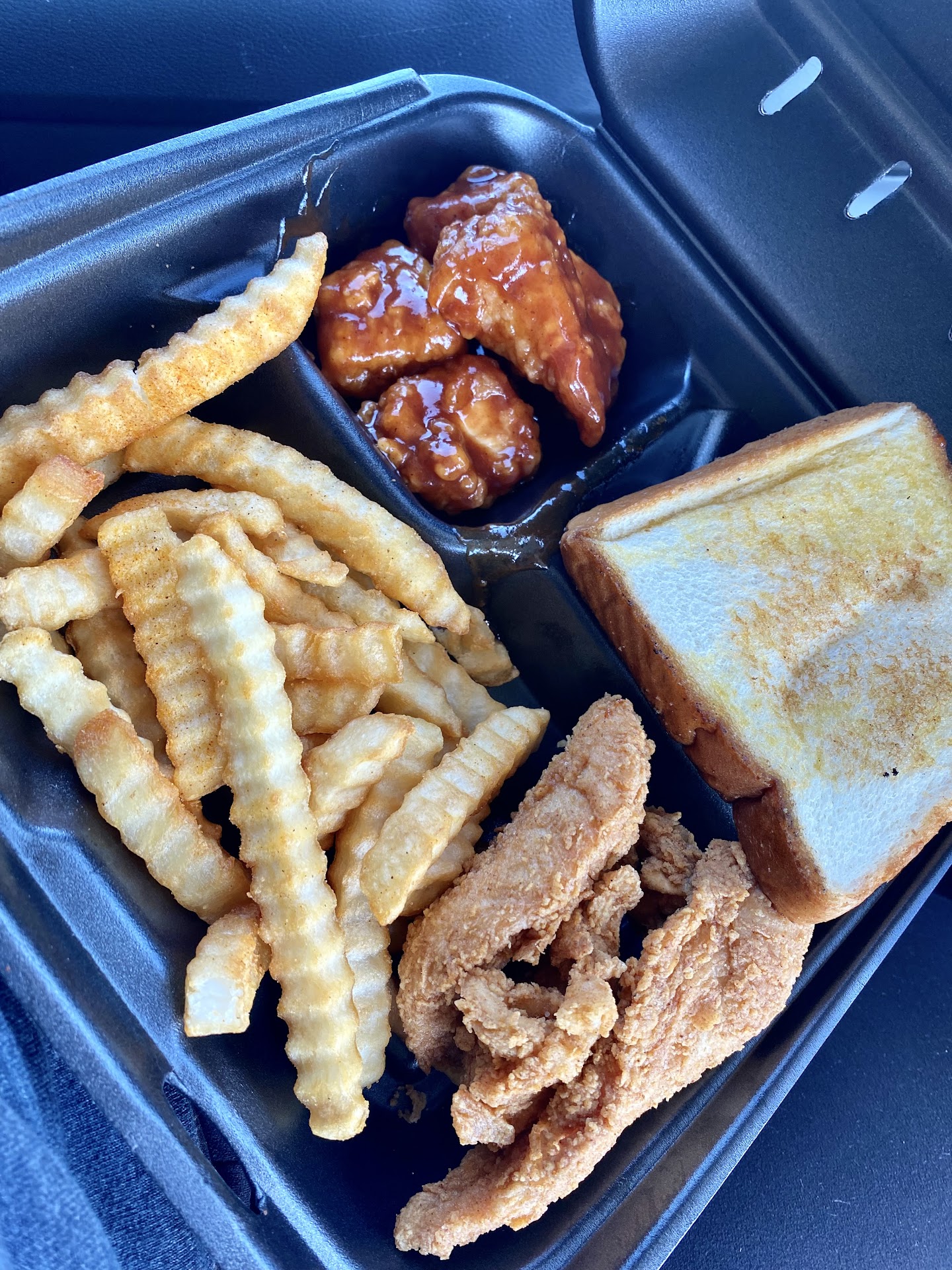 Zero stars...Auburn Ave location. I joined the rewards program online where it states join and I can get an offer of free tenders. I called the location to verify, and was told that is only after you start getting rewards. Okay, that makes sense and I am fine with that. However, after placing my order for two meals and two funnel cakes. I get a popup that says I have a free reward for one few funnel cake for spending over $5. I applied the reward and took of one of my funnel cakes. Since we don't need three. Hubby goes to the location to get our order as I'm having a major migraine. He gets there and all they will say is they are not going to honor the reward. No details on why not. What made the situation worst is they asked a black female employee to speak with him. Now she isn't in a position of management nor was he acting upset. He was just asking questions that I asked him to ask them while he had me on the phone. I can only take that one of two ways. They either thought they were going to get him to stop asking questions because she is of color. That or they were trying to see if her being a female he might find cute. That would make him act different. Those are the only two reasons I can think of. She was at least able to tell us why they didn't honor the rewards. They decided since I ordered a funnel cake and I get a free one they would just take the cost off my bill for the funnel cake. That way I get one funnel cake. If that is the case that is fine ask me if I would like to purchase another one or offer a free one for the trouble. Then we asked for no ice for our drinks. Cups fulled with ice. Fries undercooked and tenders hard. I won't be spending my money here.