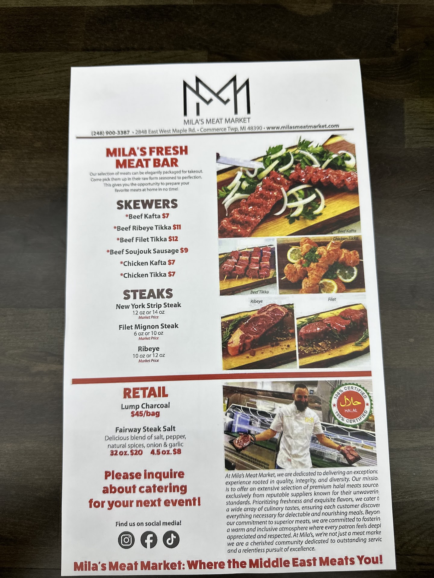 In short, Mila's Meat Market is not just a place to buy meat—it's a destination for an unforgettable dining experience. From their exquisite platters to their unique Michigan soda machine, and the freshest meat and chicken skewers and steaks, every aspect of Mila's Meat Market is designed to delight and impress. Don't miss out on this exceptional meat market—it's a true treasure...