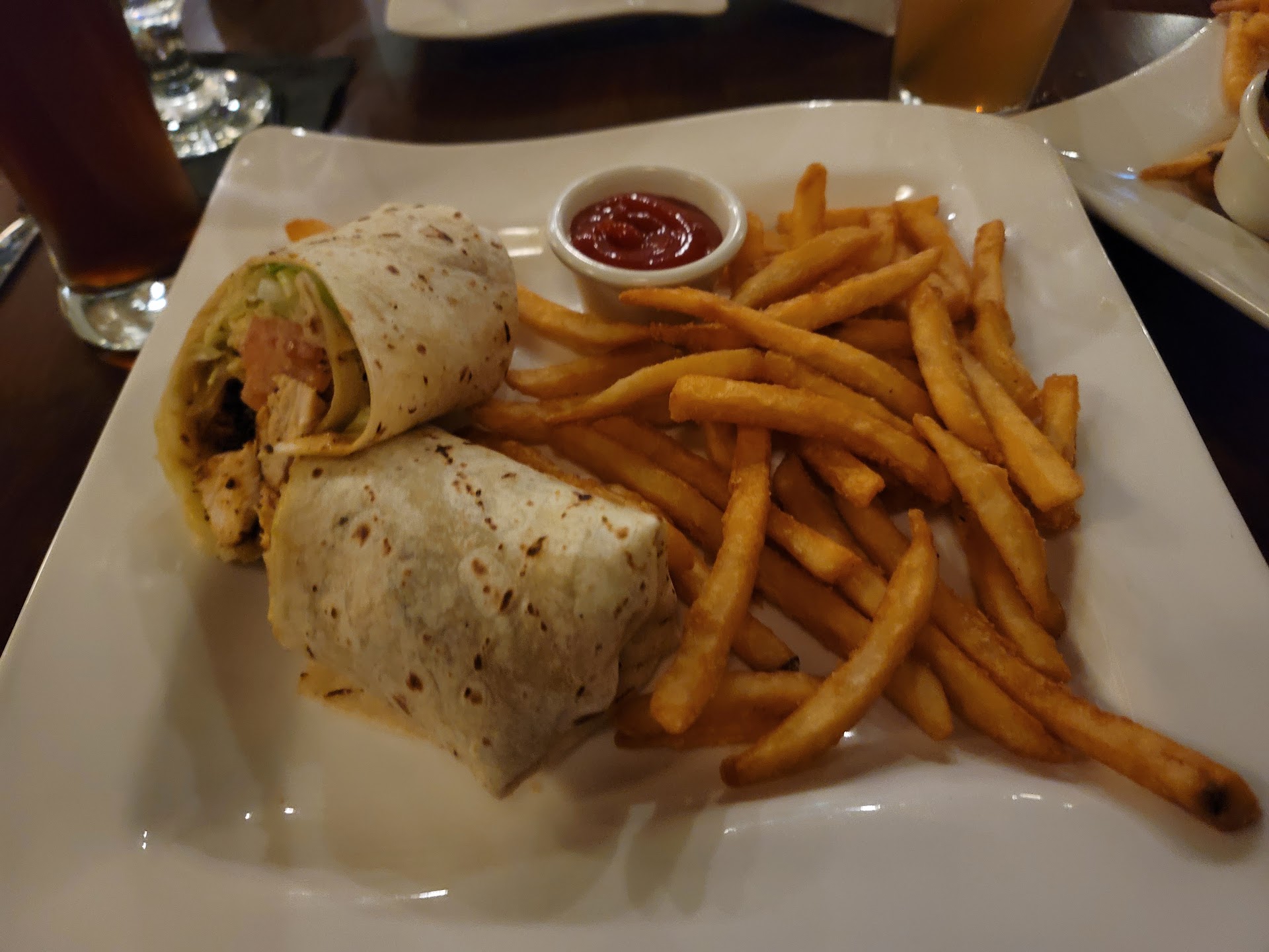 I ordered the Turkey burger with rice pilaf, and my wife ordered the Filet (medium rare) with asparagus instead of the mixed vegetables and fingerling potatoes. The turkey burger wasn't hot, the rice pilaf was cold, and burger patty was burnt on one side. My wife's filet ($40.00) was overcooked and dry, the asparagus ($2.00 upcharge) was undercooked, woody and cold, and the potatoes were undercooked and hard. Additionally, my wife ordered a Cosmo ($11.00) and it had so much vodka in it, halfway through it she couldn't finish it.